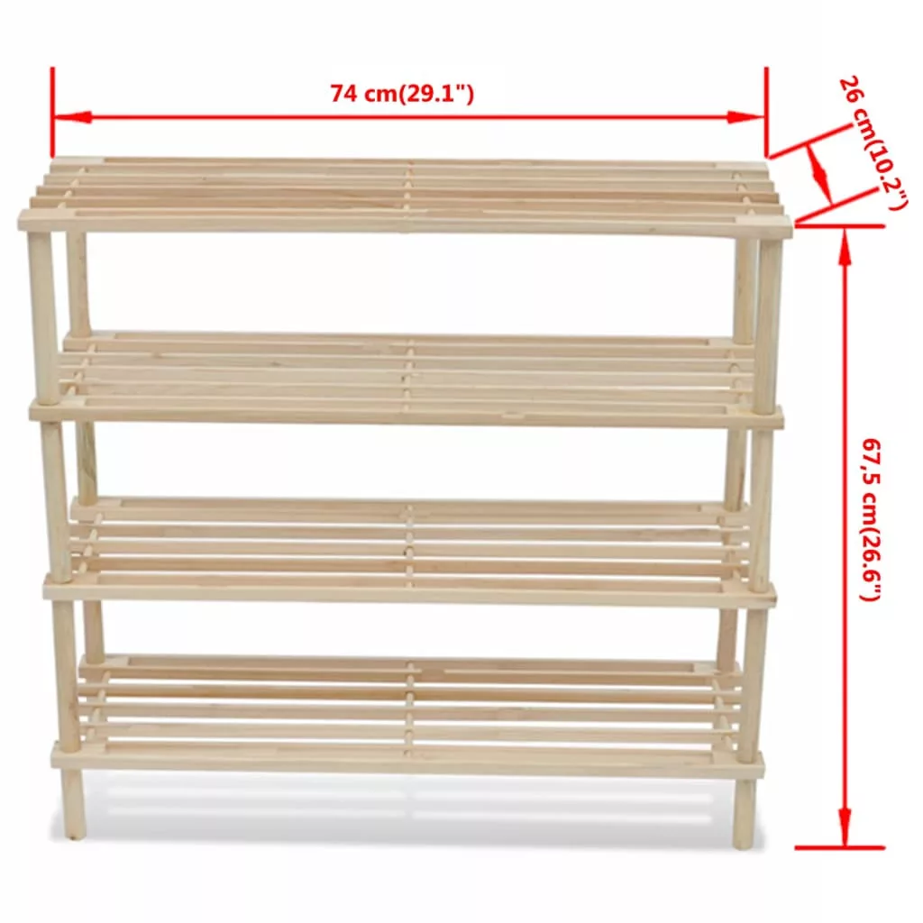 2 db 4-szintes tömör fenyőfa cipőpolc