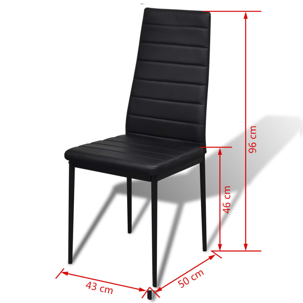 Ez a fekete étkező szett 5 darabos, karcsú, modern tervezésű. Tökéletes azok számára akik egy kis stílust szeretnének vinni otthonukba. Az asztallap nagy szilárdságú edzett üvegből készült, amely könnyen tisztítható. Minden szék kiváló minőségű műbőrrel van kárpitozva. A rugalmas, párnázott ülés nagyon kényelmes. A szett 1 asztalt és 4 széket tartalmaz.