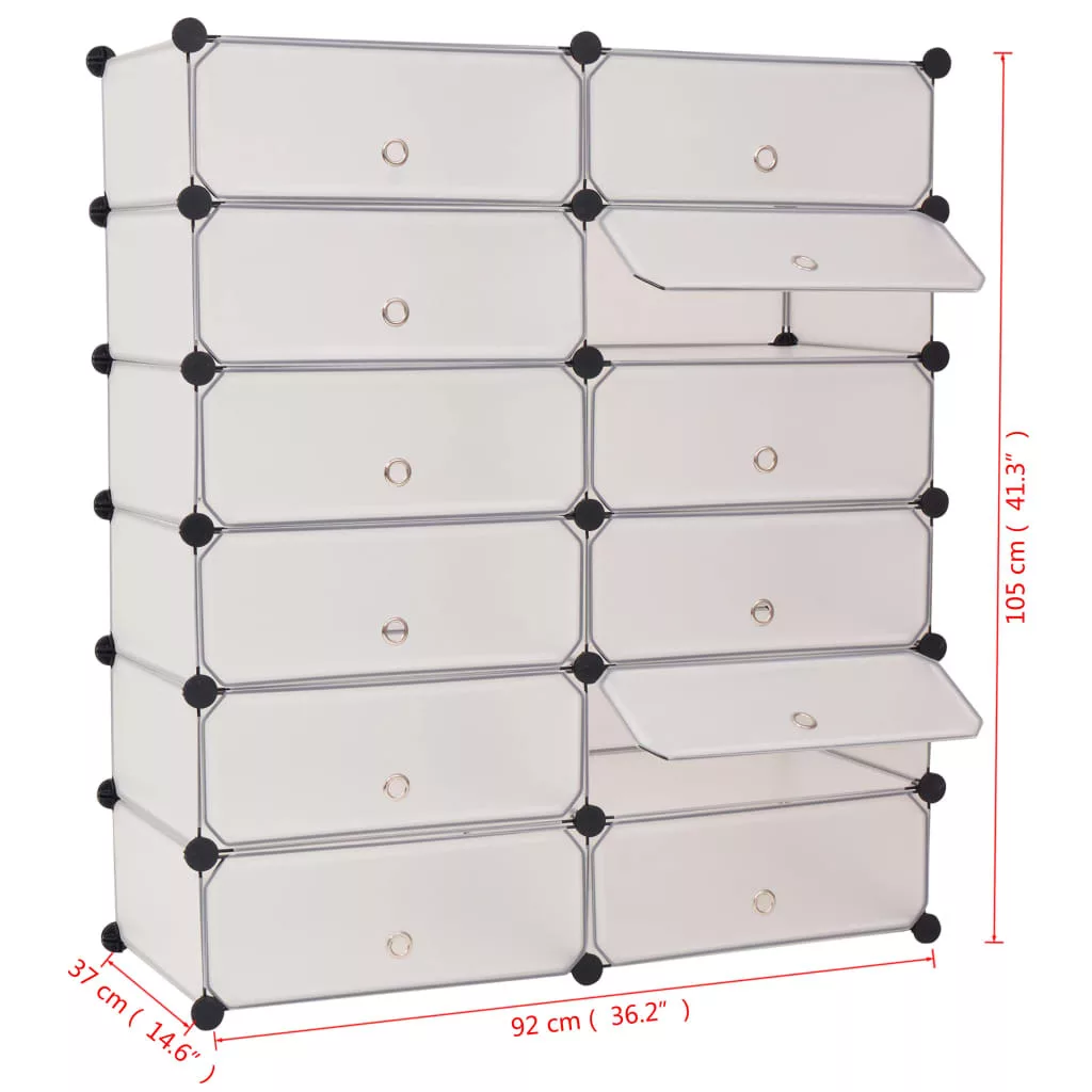 A stílusos és praktikus cipőszekrény 12 rekesszel rendelkezik, amely mindegyike ajtóval zárható, és kiváló megoldást jelent cipők tisztán tartásához és rendezett tárolásához. A cipőszekrény kiváló minőségű műanyagpanelekkel és acélszerkezettel rendelkezik, így masszív és tartós. A műanyagnak köszönhetően a szekrényt könnyű tisztítani. A tároló a műanyag csatlakozókkal gyorsan és könnyen, igény szerint összeállítható. Könnyű súlya miatt pedig egyszerű a mozgatása.
