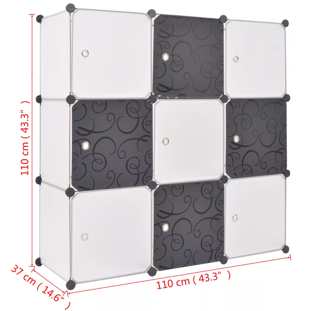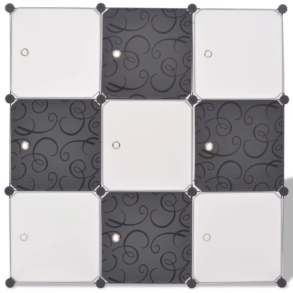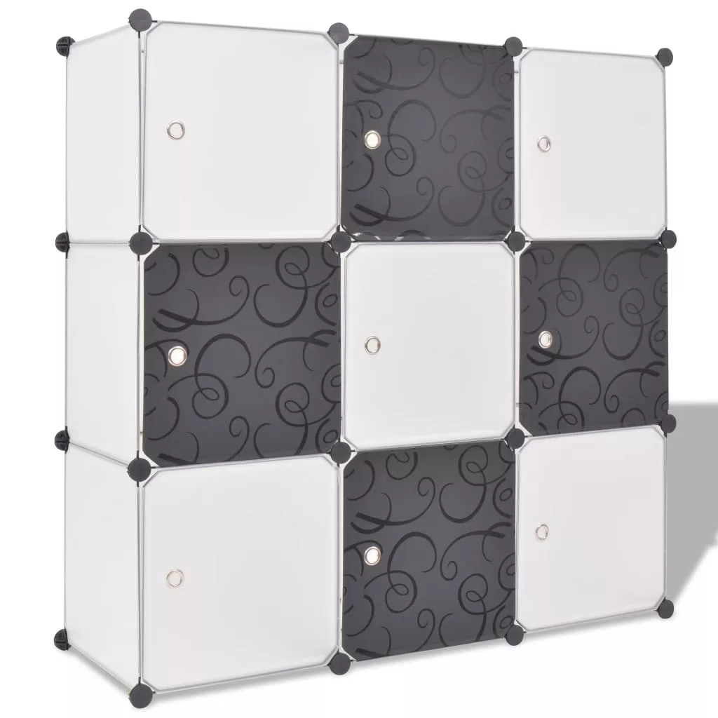 fekete és fehér kocka alakú tároló 9 tárolórekesszel