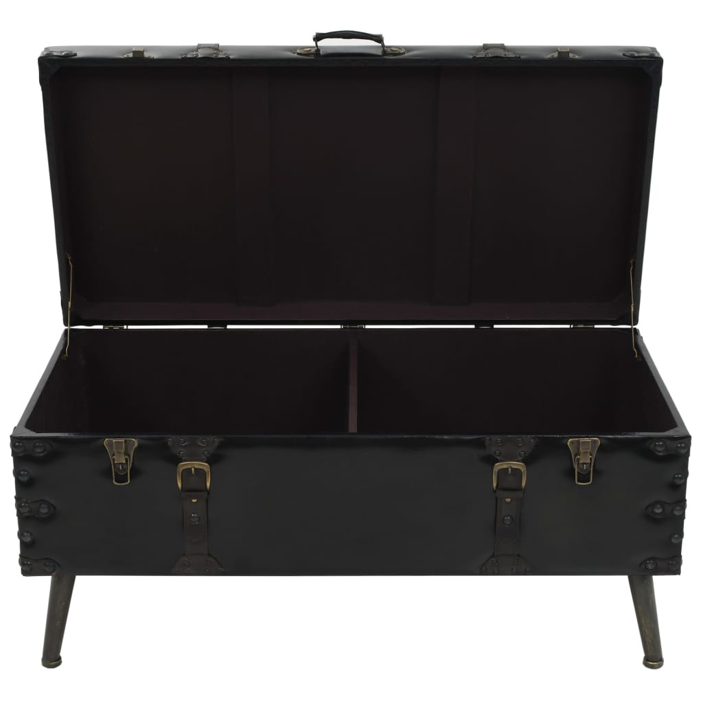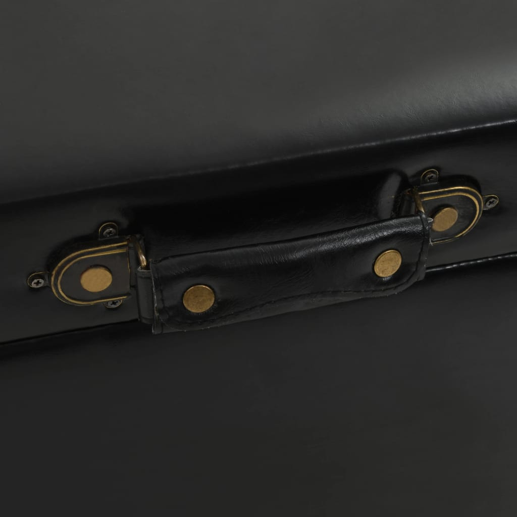 Ez az utazókoffert formázó dohányzóaasztal vintage dizájnjának köszönhetően stílusos kiegészítője lehet otthonának. Akár kisasztalként is használható. Ez az időtálló és gyönyörű asztal MDF-ből készült, mely párnázott műbőr kárpitot kapott, és erős acéllábakkal lett ellátva, melyek kiemelik rusztikus megjelenését. Az asztallapon elhelyezhet például italokat, vázákat, cserepes növényeket, gyümölcsös kosarakat vagy egyéb dísztárgyakat. A tárolóláda két nagyméretű tárolórekesszel rendelkezik, melyek bőséges helyet kínálnak különféle tárgyak, például plédek, könyvek, magazinok vagy távirányítók tárolásához, melyeket egy karnyújtásnyira szeretne tudni. A puha és kényelmes fogantyúknak köszönhetően a dohányzóasztal könnyen mozgatható nappalijában. A termék összeszerelése egyszerű.