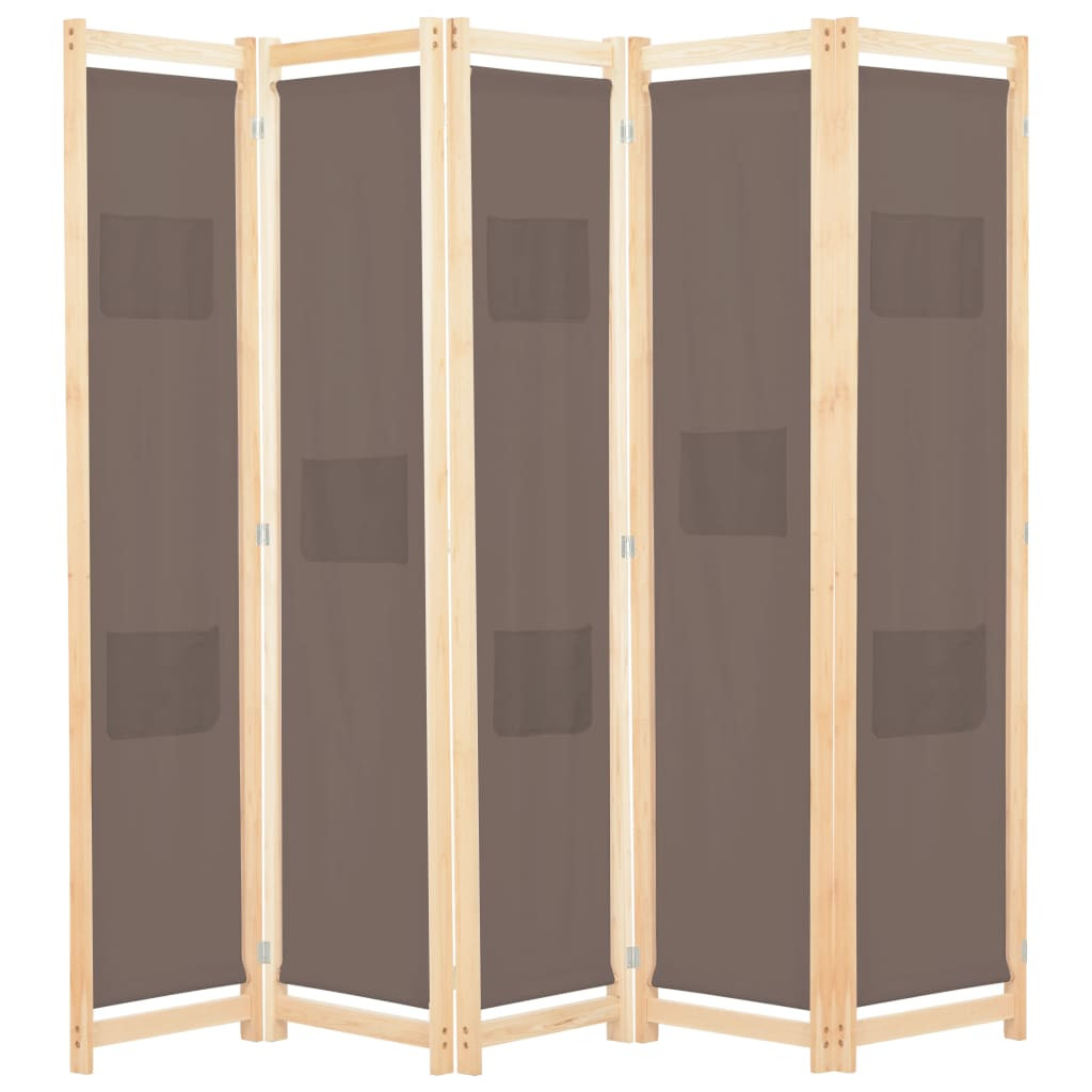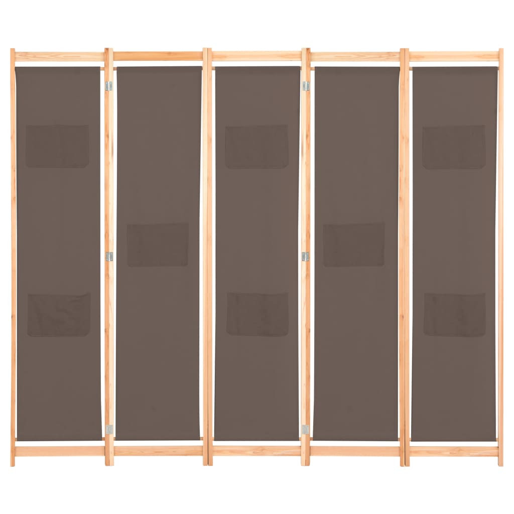 barna 5-paneles szövetparaván 200 x 170 x 4 cm