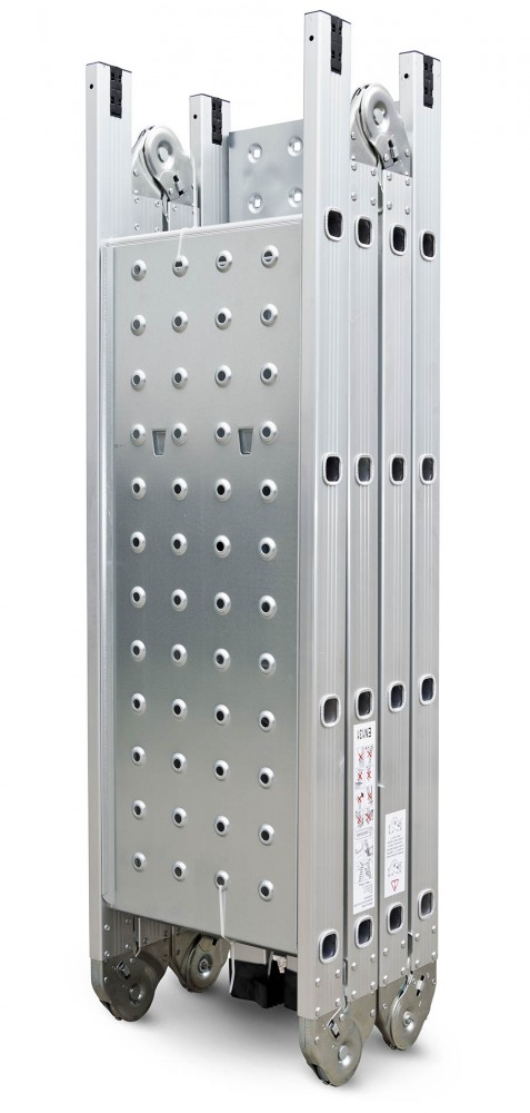 Ez a kiváló modell - szakemberek számára kifejlesztve - meglehetősen merev konstrukcióval rendelkezik, a könnyű alumíniumból készült vázat nem nehéz cipelni, az egyedi tervezésnek köszönhetően pedig könnyen összecsukható és mérete a minimálisra csökkenthető. A felsorolt a tulajdonságoknak nem csak a profik, de akár Ön is hasznát veheti a műhelyben, otthon vagy a kertben. Átalakítható akár támasztó létrává is, a teljes hossza így 3,7 méterre növelhető. További érdekessége, hogy állólétrából állvánnyá alakítható.