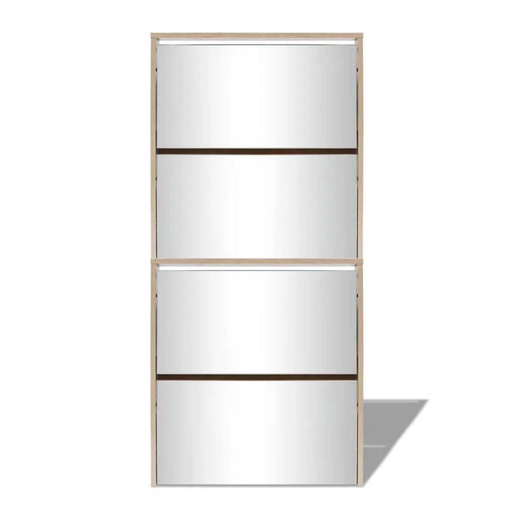 4 szintes tükrös tölgy cipőszekrény 63 x 17 x 134 cm