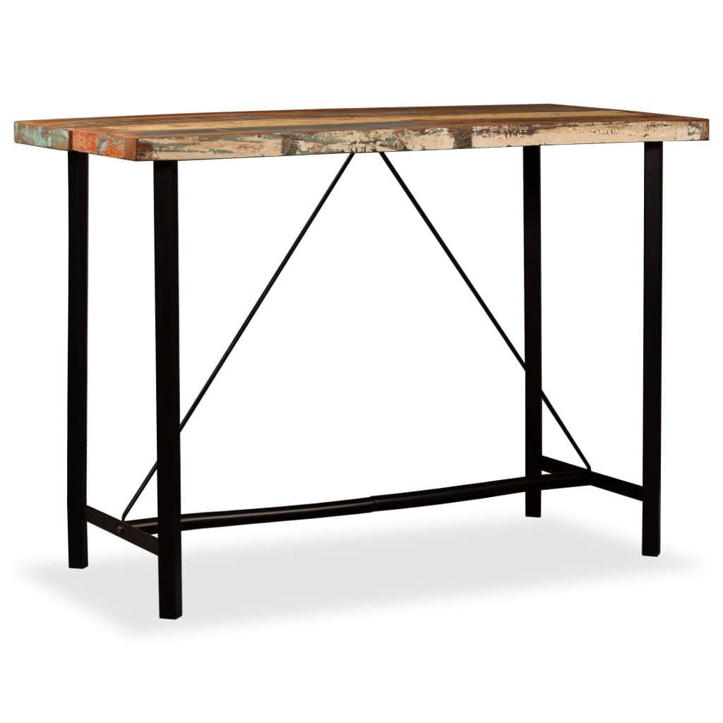 Ez a vagány bárszett ipari megjelenéssel bír, és megkapó kiegészítője lehet bármilyen otthonnak, bárnak vagy étteremnek. A bárasztal tömör újrahasznosított fából készült, így mintájában különféle fafajták jellemzői fedezhetők fel, például a tíkfa, a mangófa vagy az akácfa karakterisztikája. Az újrahasznosított fa stabil, strapabíró, időtálló és gyönyörű, ráadásul teljes egészében kézzel készült. Az erős acél lábak kiemelik az asztal ipari stílusát, és hozzájárulnak a stabilitásához. Fontos megjegyzés: A bútorok színe és erezete darabonként változhat, így minden bútordarab teljesen egyedi, és kis mértékben eltér a többitől. A kiszállítás véletlenszerűen történik. A bárszékek pihe-puha, valódi bőrből készültek, így rendkívül időtállók és kényelmesek. Az erős acél lábak kiemelik az asztal ipari stílusát, és hozzájárulnak stabilitásához. A szállítmány 1 db bárasztalt és 6 db bárszéket tartalmaz. Könnyen összeszerelhető. Maksimális 110 kg ülésenként. Legyen tudatában a nyílt tűz és más erős hőforrások kockázatának a termék környezetében.