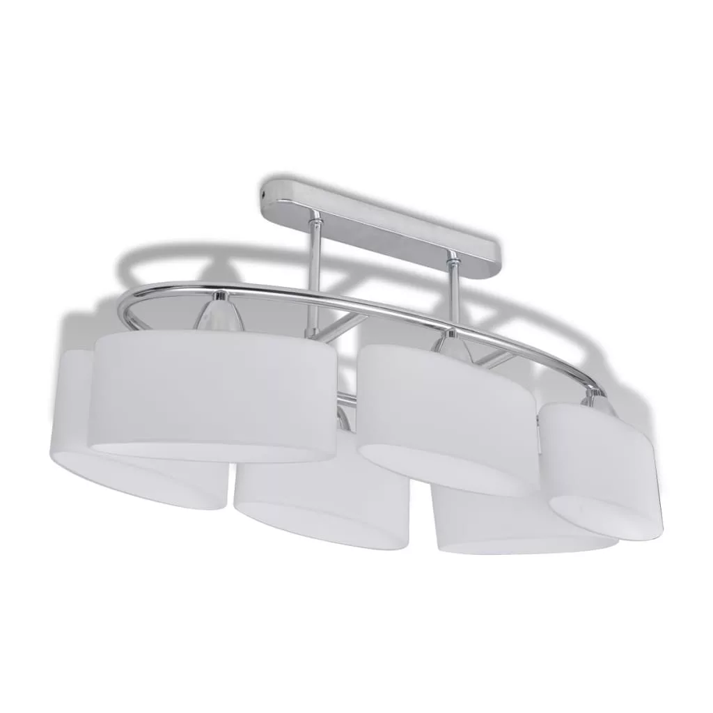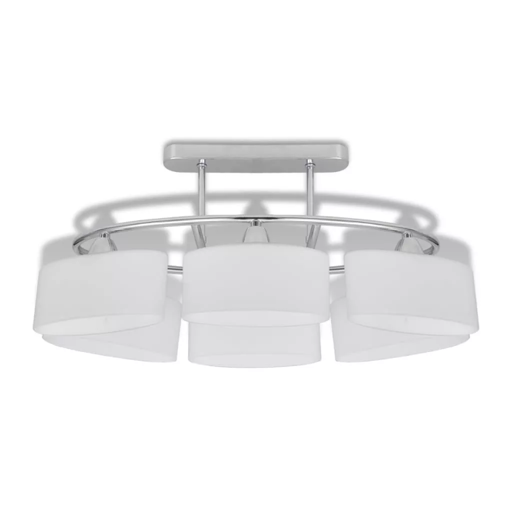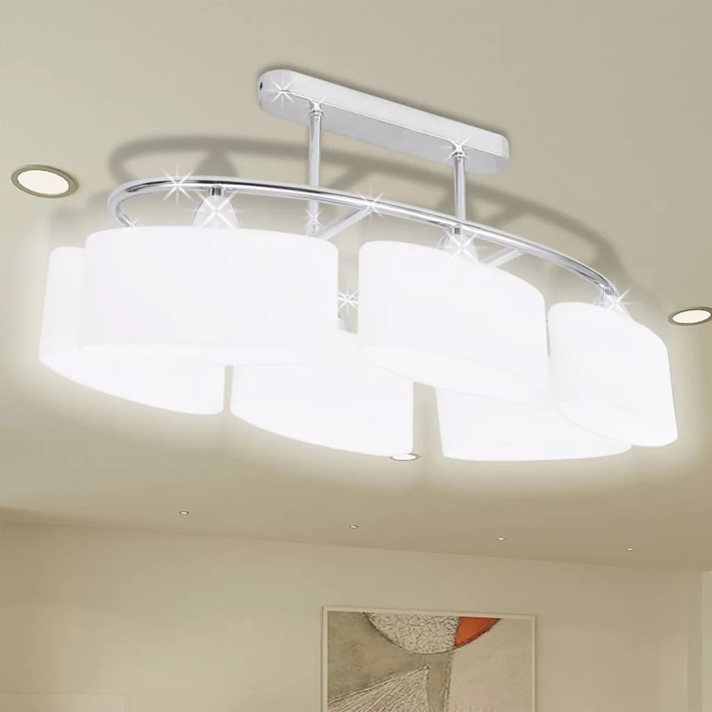 Ez a hat üvegburával ellátott, egyedi mennyezeti lámpa modern dizájnnal rendelkezik. Króm felülete modern stílust kölcsönöz a lámpának, mely bármilyen stílusú nappaliba vagy hálószobába tökéletesen illik. Ezt a lámpát a kiváló minőségű kocka alapú fémtalpnak köszönhetően bármely mennyezetre könnyen fel lehet szerelni. A finom ellipszoid burákon át kellemes fény érkezik, amely a szoba minden sarkát megvilágítja. Ezt a kivételes mennyezeti lámpát lenyűgöző egyszerűsége garantáltan megkülönbözteti a többitől. A lámpába hat E14 izzó való. Kérjük, vegye figyelembe, hogy az izzók nem tartoznak a csomaghoz. A szállítmány 2 lámpát tartalmaz.