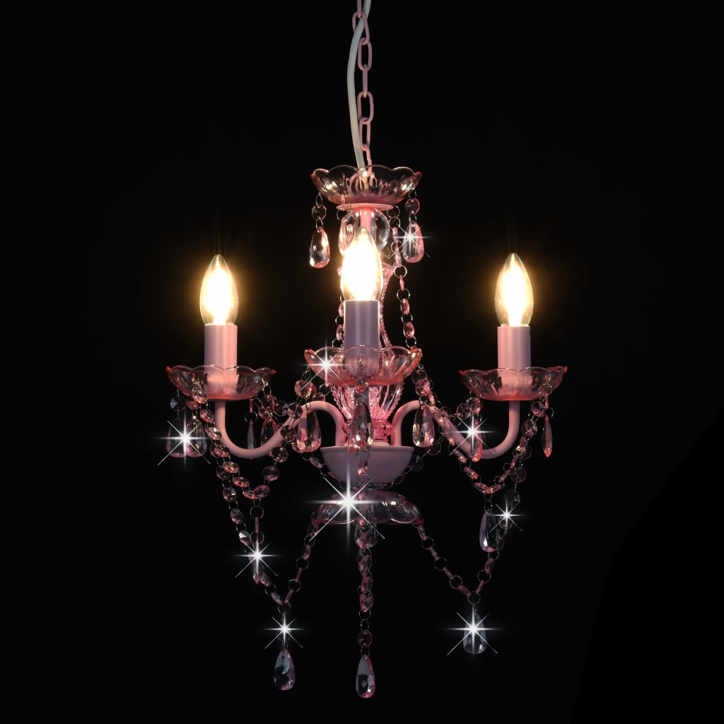 rózsaszín kerek csillár gyöngyökkel 3 x E14