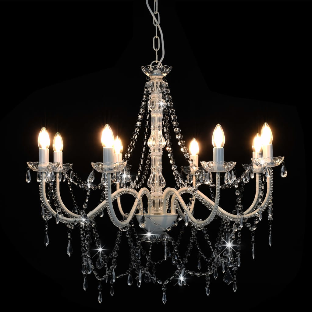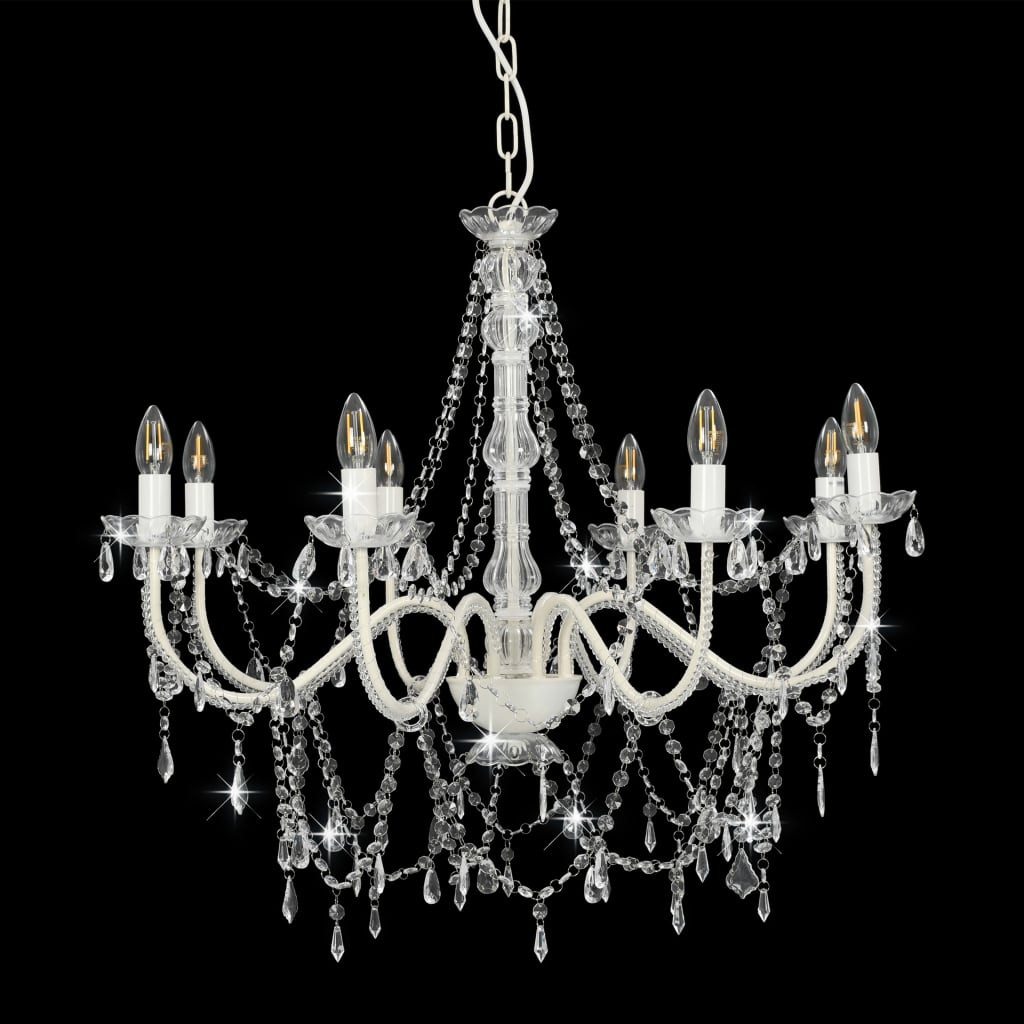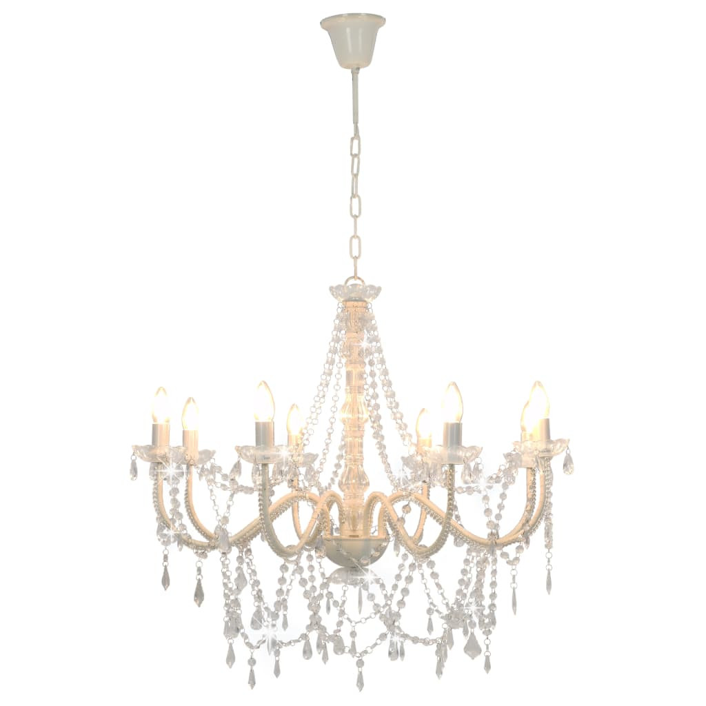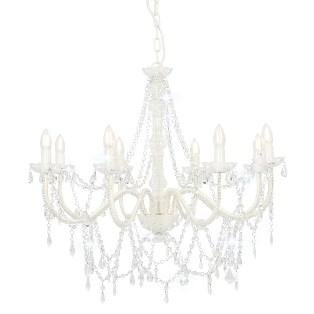 fehér csillár gyöngyökkel és 8 db E14 izzófoglalattal