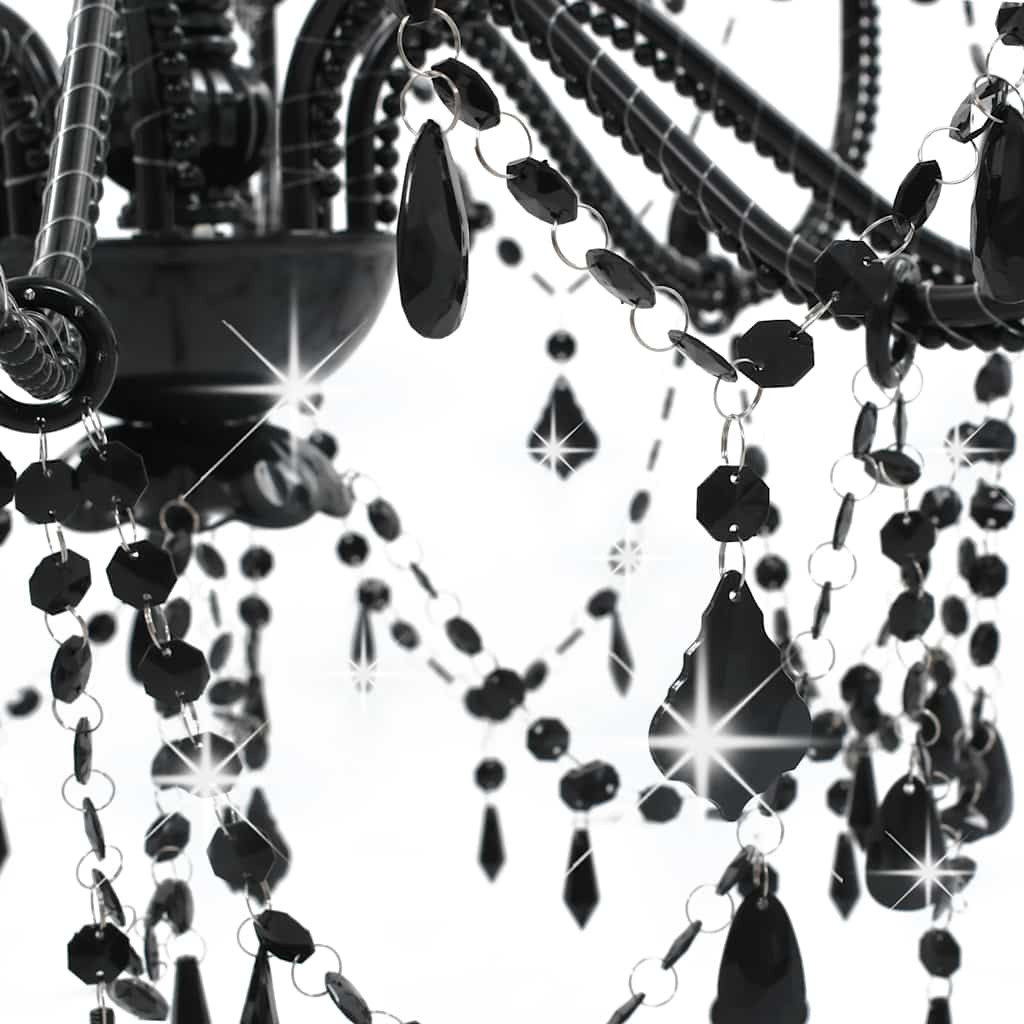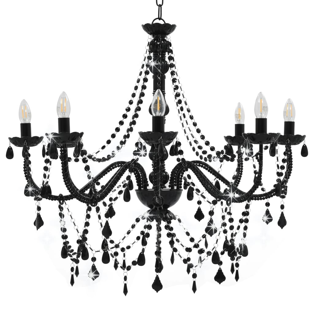 fekete csillár gyöngyökkel és 8 db E14 égővel