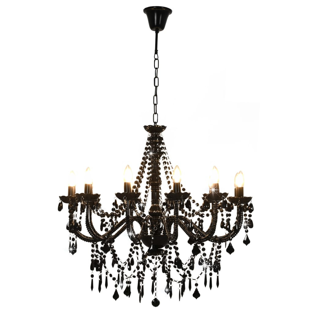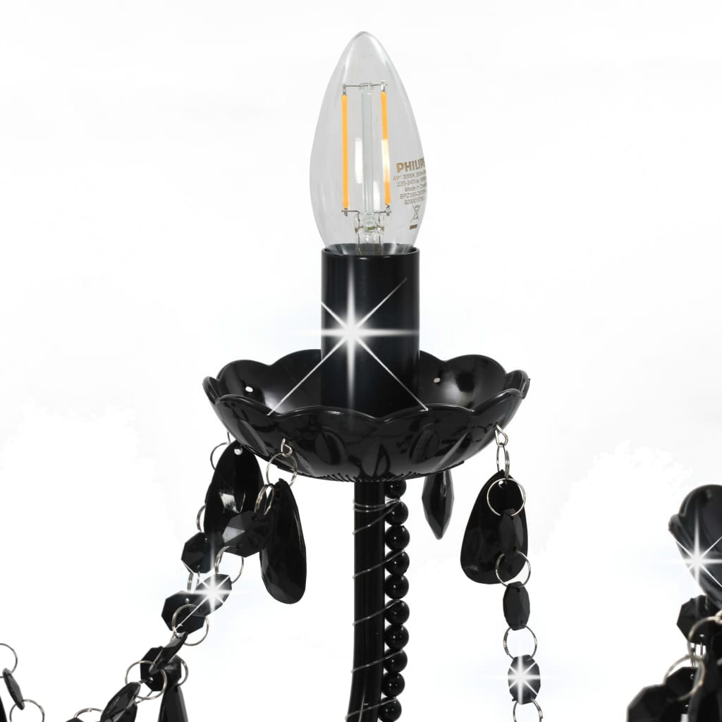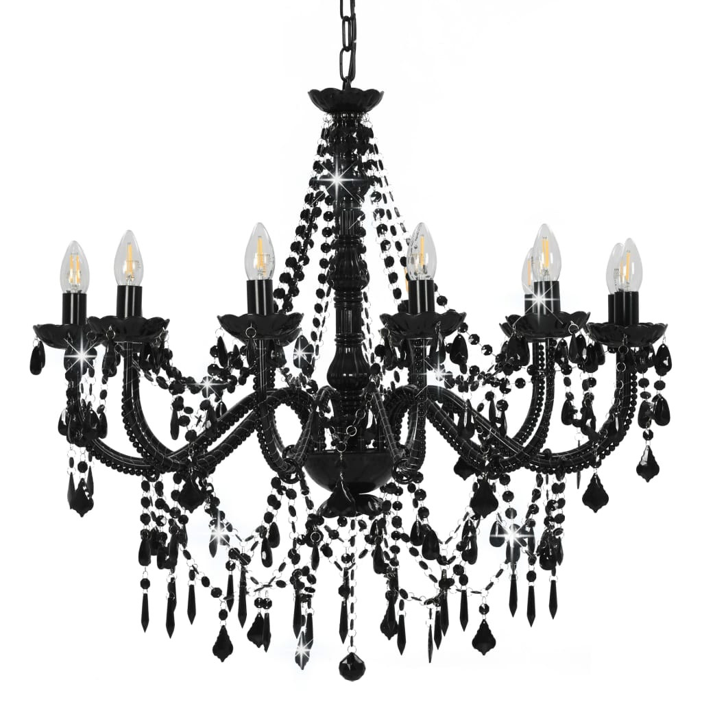 fekete csillár gyöngyökkel és 12 db E14 izzófoglalattal