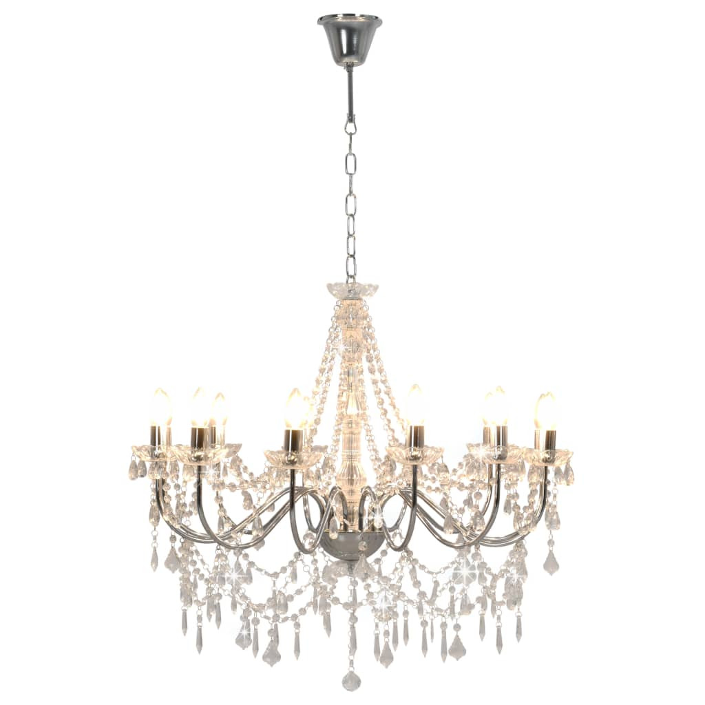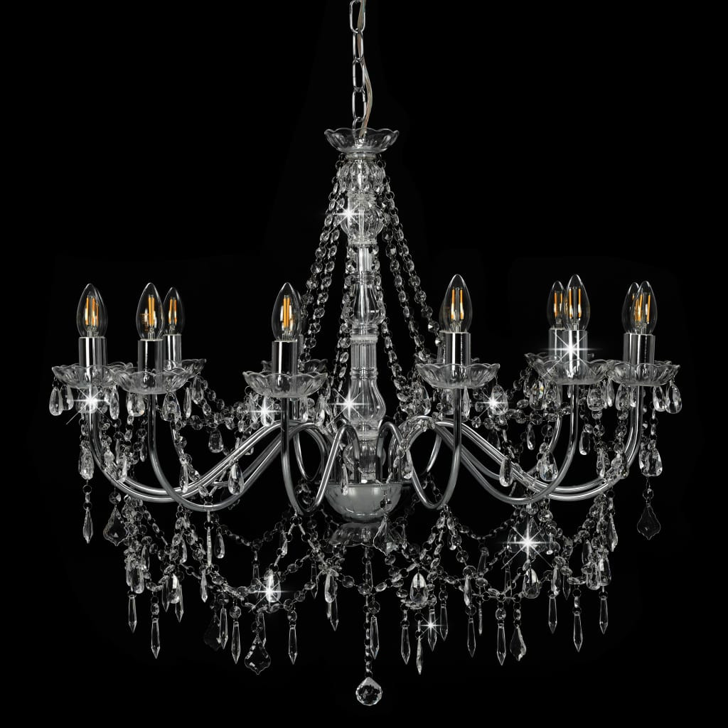 ezüstszínű csillár gyöngyökkel és 12 db E14 izzófoglalattal