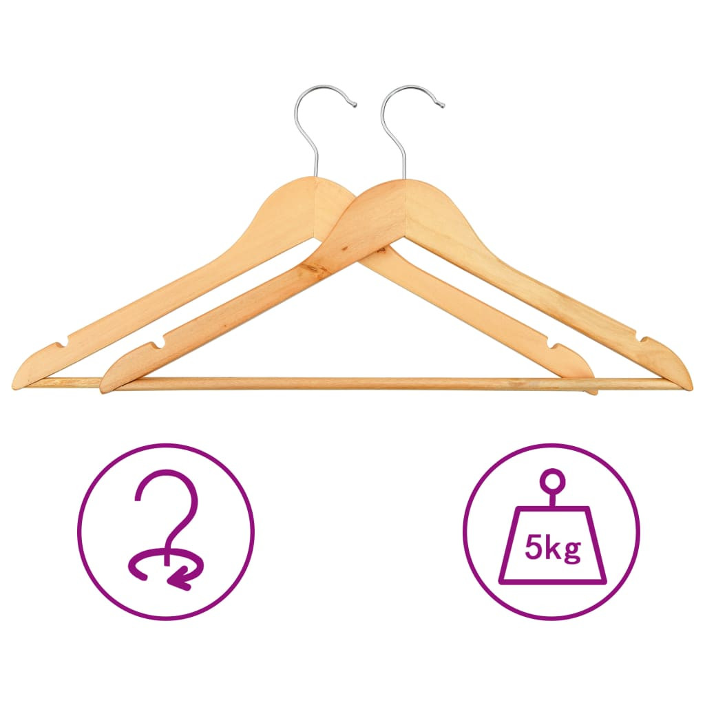 Ez a fa akasztószett keményfából és fémből készült, így elég strapabíró és masszív ahhoz, hogy nehezebb súlyt is megtartson. A 360 fokban elforgatható akasztó rugalmas megoldást kínál ruhái különféle helyeken történő tárolásához. A két oldalán lévő rovátkák megakadályozzák, hogy a ruhák vagy kiegészítők lecsússzanak róluk. Emellett a henger alakú dizájn megakadályozza a ráncolódást és további akasztási lehetőséget biztosít nadrágok, lepedők, takarók... stb. felakasztásához.
