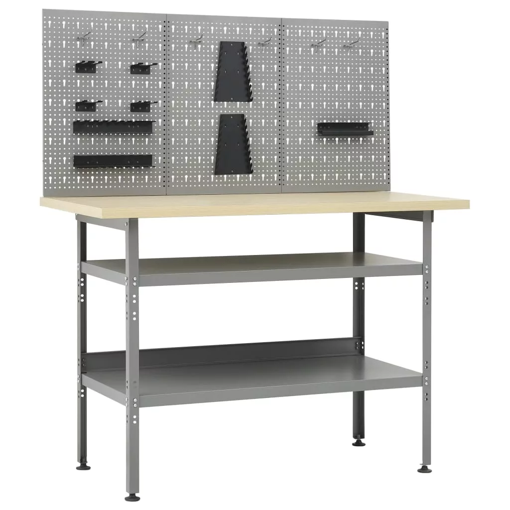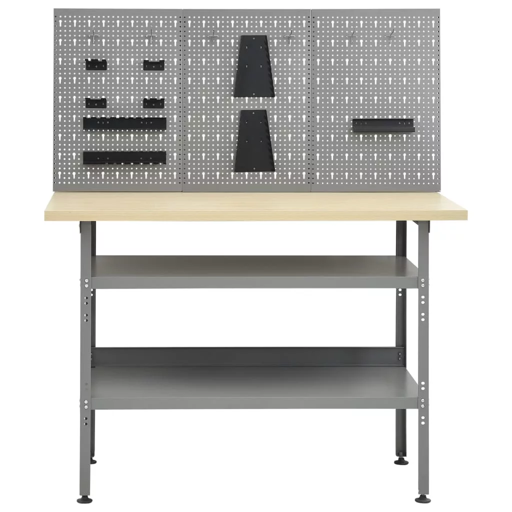 Ez az eszköz 1 nagy teherbírású munkapadból és 3 perforált fali panelből áll, így kiváló választás a különféle szerszámok rendszerezésére és tárolására. A nagy teherbírású munkapad bőséges tárolóhellyel és 300 kg-os teherbírással rendelkezik. A munkapad 2 nagy polcán könnyen tárolhat fúrókat, kábeldobokat, köszörűket és egyéb szerszámokat. Emellett a lábak magassága állítható. Ez a munkaállomás prémium acélból és forgácslapból készült, így különösen erős, tartós és könnyen tisztítható. Könnyű összeszerelni. Ezek a tömör acélból készült szerszámtartó panelek elbírják a különböző szerszámok, például fúrók, fogók, csavarhúzók és villáskulcsok súlyát. A panelek a szerszámok egyszerű és biztonságos rögzítésének érdekében perforáltak. A 3 fali panel egymáshoz rögzíthető az extra szilárdság érdekében. 120 cm-es szélességű munkapad és műhelyszekrények ideális kiegészítője.