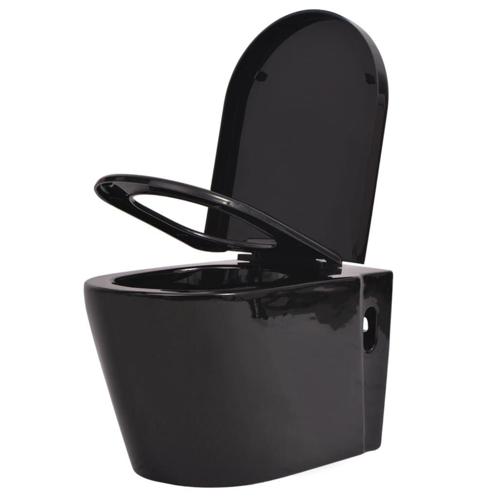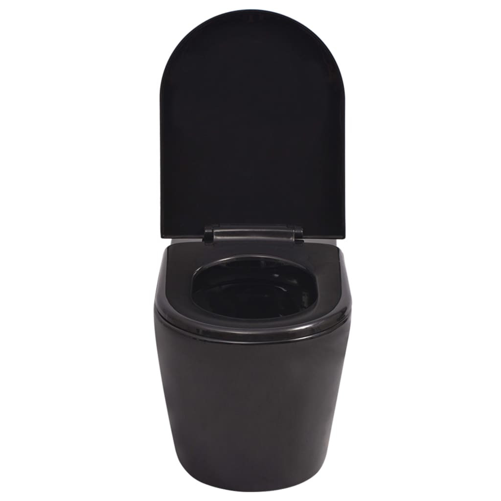 fekete falra szerelhető kerámia WC rejtett öblítőtartállyal