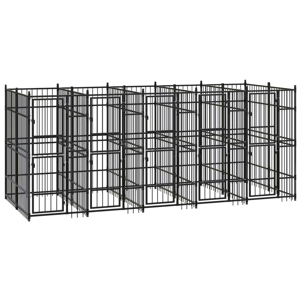 Ez a sokoldalú kutyakennel többféleképpen használható: játékhoz, gyakorláshoz, idomításhoz, vagy egyszerűen a kutyája biztonságának megőrzéséhez, igazi kis paradicsom négylábú kedvencei részére. Ez a kutyakennel bőséges helyet kínál a mozgáshoz, az acélrudakból álló fal pedig segít megakadályozni a kutyák szökését, illetve megelőzni a váratlan baleseteket, miközben lehetővé teszik a szellőzést. Robusztus, porszórt acélszerkezetének köszönhetően ez a kiváló minőségű kutyakennel strapabíró és hosszú időn át használható. A zsanéros ajtó lelakatolható, így extra védelmet és biztonságot garantál kutyáinak.