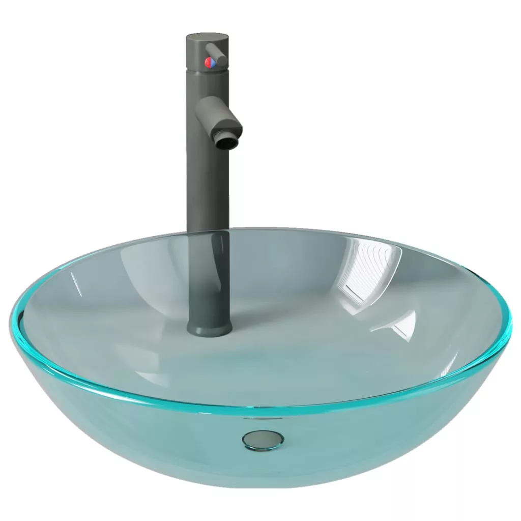 edzett üveg mosdókagyló csapteleppel és leeresztőszeleppel