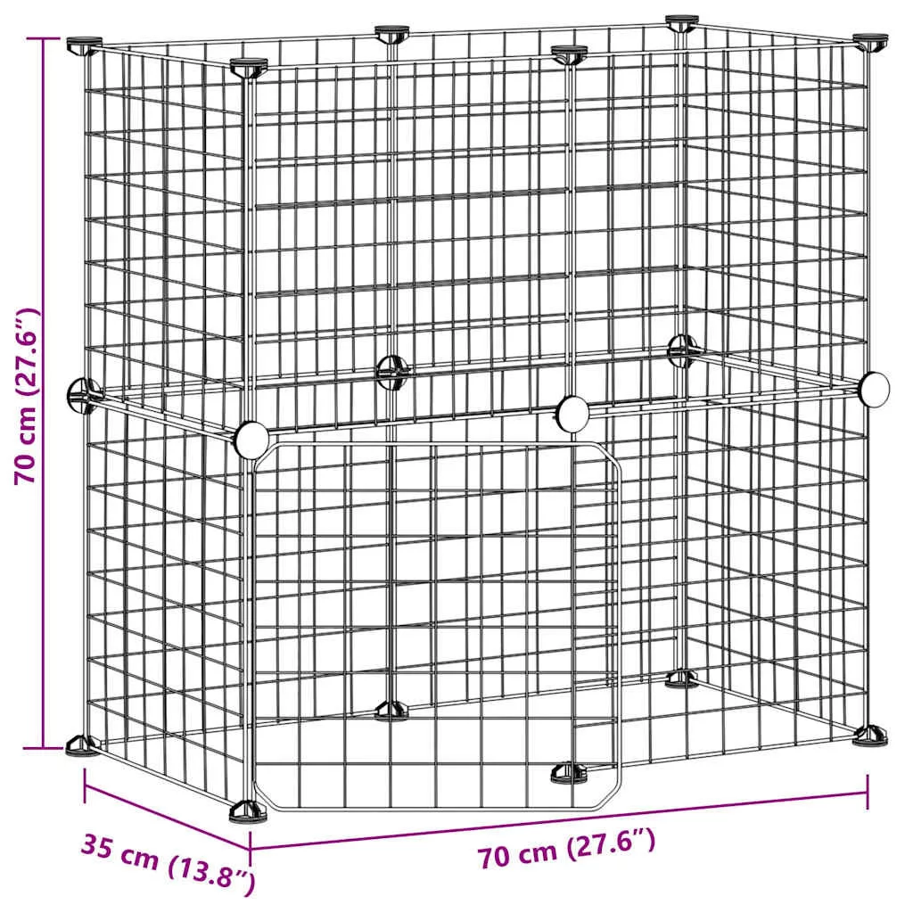 12 paneles fekete acél kisállatketrec ajtóval 35 x 35 cm