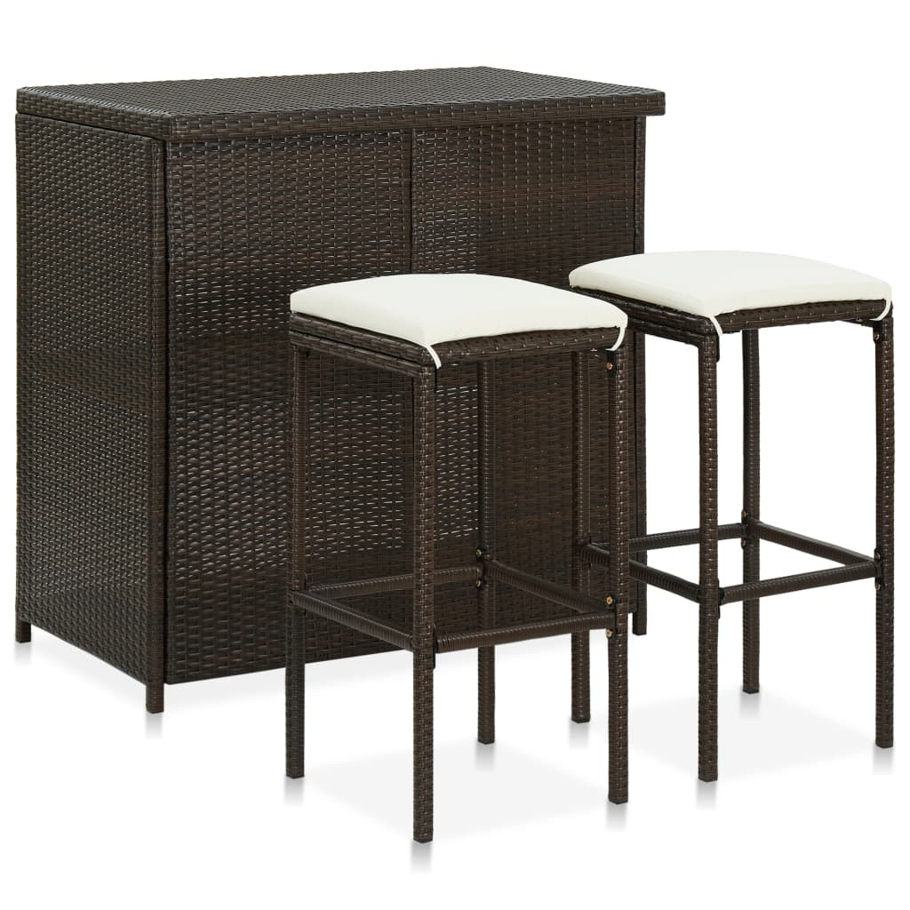 Cseverésszen és iszogasson barátaival ezen a stílusos bárszetten pihenve! A bisztrószett erős acélvázat kapott, így stabil. A PE rattan strapabíró és ellenáll az időjárás viszontagságainak, ezért mindennapos használatra is alkalmas. A garnitúra könnyű súlyának köszönhetően egyszerűen mozgatható. Az ülőpárna és a beépített lábtartó tovább növeli az ülőke kényelmét. A könnyen tisztítható, rejtett cipzárral ellátott, poliészter párnahuzat levehető és mosható. A bárasztal két fiókkal is fel lett szerelve, így bőséges helyet kínál nélkülözhetetlen holmijai elérhető közelségben történő tárolásához.
