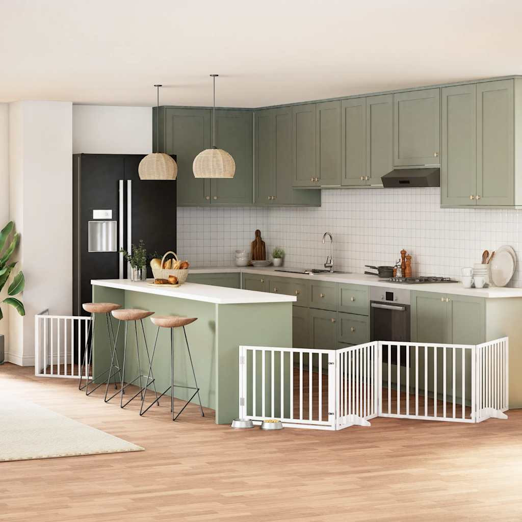 fehér nyárfa 12 paneles összecsukható kutyakapu ajtóval 960 cm