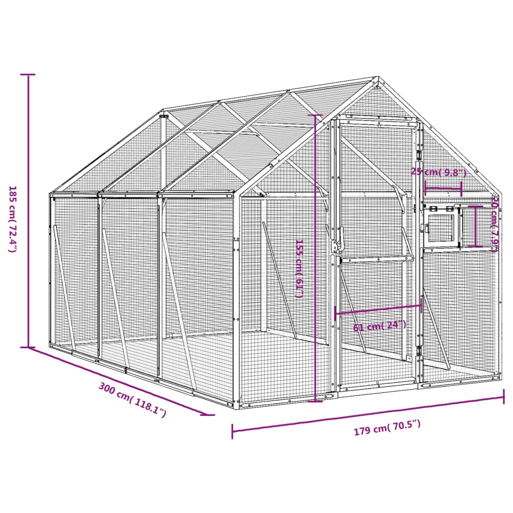 antracit alumínium madárház 1,79 x 3 x 1,85 m