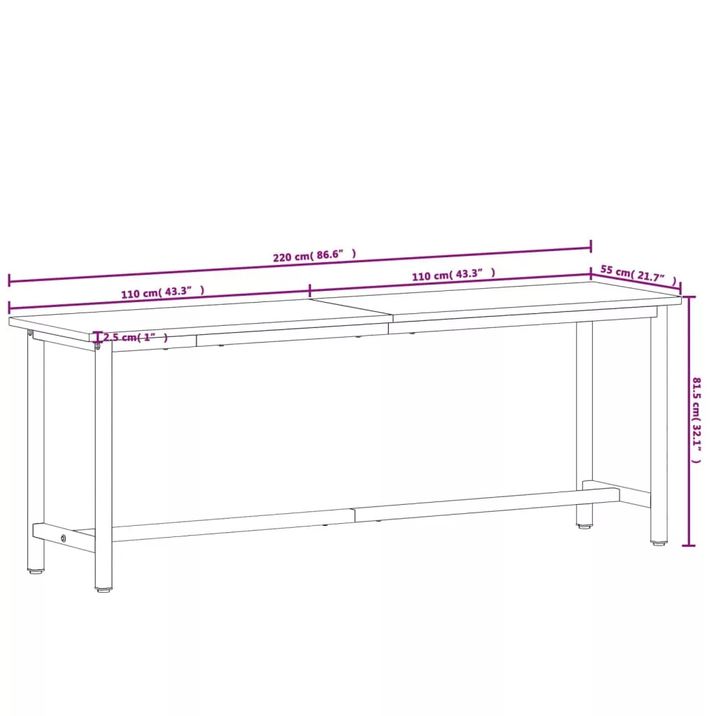 tömör bükkfa és fém munkaasztallap 220x55x81,5 cm