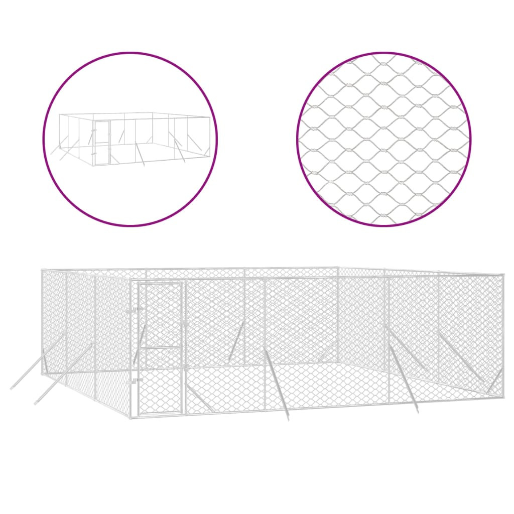 ezüstszínű kültéri horganyzott acél kutyakennel 6x6x2 m