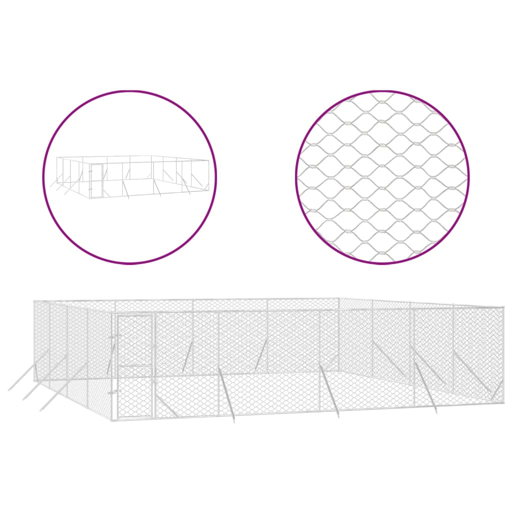 ezüstszínű kültéri horganyzott acél kutyakennel 8x8x2 m