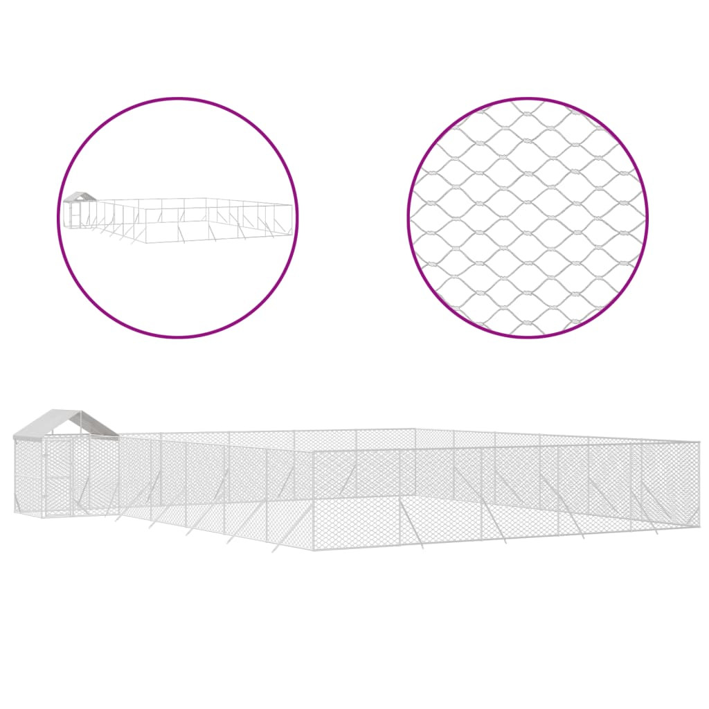 ezüstszínű horganyzott acél kutyakennel tetővel 12x12x2,5 m