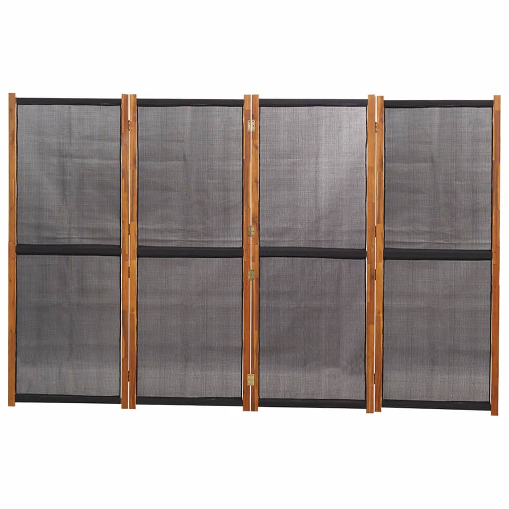 Ez a térelválasztó tökéletes egy szeparált, privát terület vagy rész kialakításához bel- vagy kültéri környezetében. Prémium minőségű anyag: A tömör akácfa egy gyönyörű természetes anyag. Az akácfa egy trópusi keményfa, amely sűrű erezetű, masszív és tartós. Az erős textilén időjárásálló és könnyen tisztítható is.Összehajtható kialakítás: Ez a többpaneles paraván a helytakarékosság érdekében használaton kívül könnyen összehajtható.Multifunkciós: Ez a szobaparaván dekorációként és térelválasztóként is használható. Tökéletes egy terület leválasztására privát szféra létrehozásához vagy egy extra helyiség kialakításához.