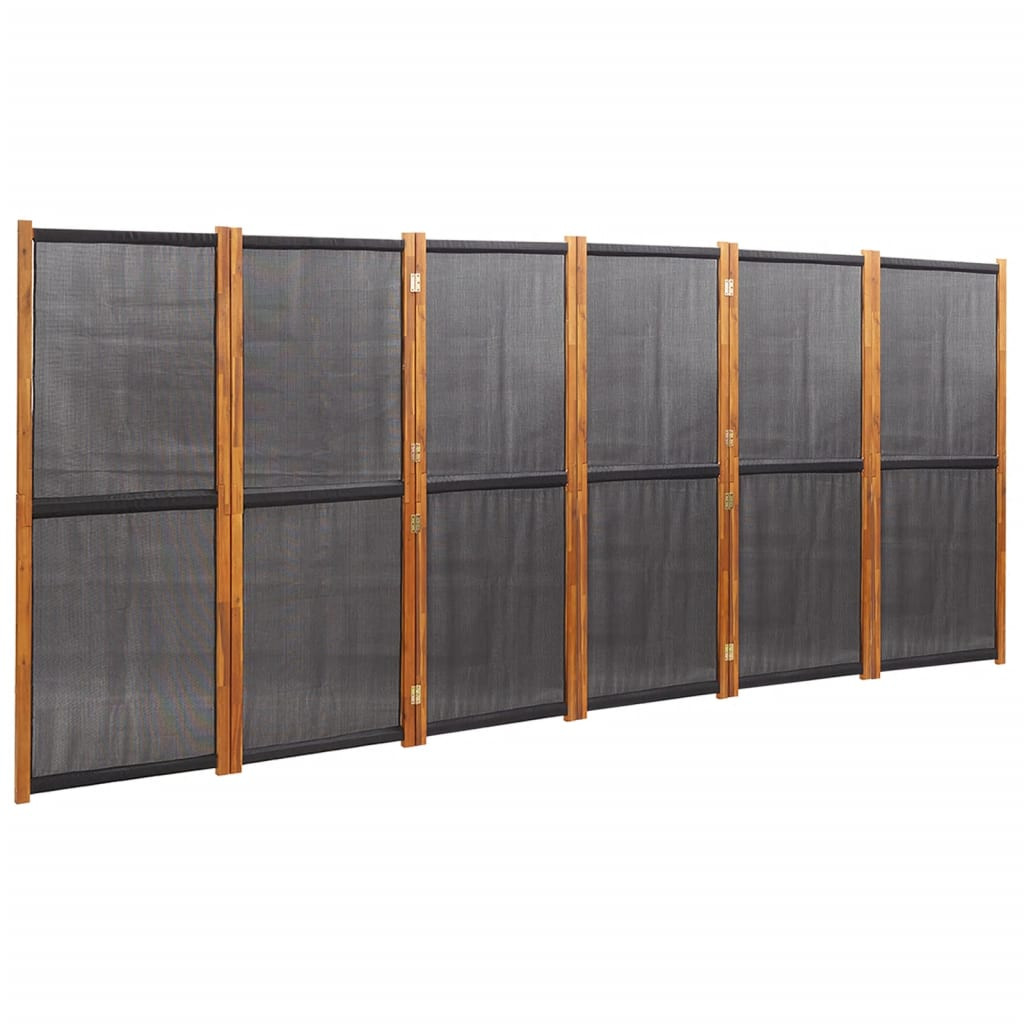Ez a térelválasztó tökéletes egy szeparált, privát terület vagy rész kialakításához bel- vagy kültéri környezetében. Prémium minőségű anyag: A tömör akácfa egy gyönyörű természetes anyag. Az akácfa egy trópusi keményfa, amely sűrű erezetű, masszív és tartós. Az erős textilén időjárásálló és könnyen tisztítható is.Összehajtható kialakítás: Ez a többpaneles paraván a helytakarékosság érdekében használaton kívül könnyen összehajtható.Multifunkciós: Ez a szobaparaván dekorációként és térelválasztóként is használható. Tökéletes egy terület leválasztására privát szféra létrehozásához vagy egy extra helyiség kialakításához.