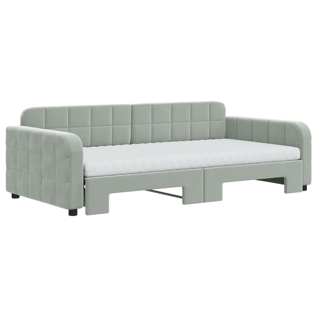 világosszürke kihúzható bársony heverő matraccal 100 x 200 cm