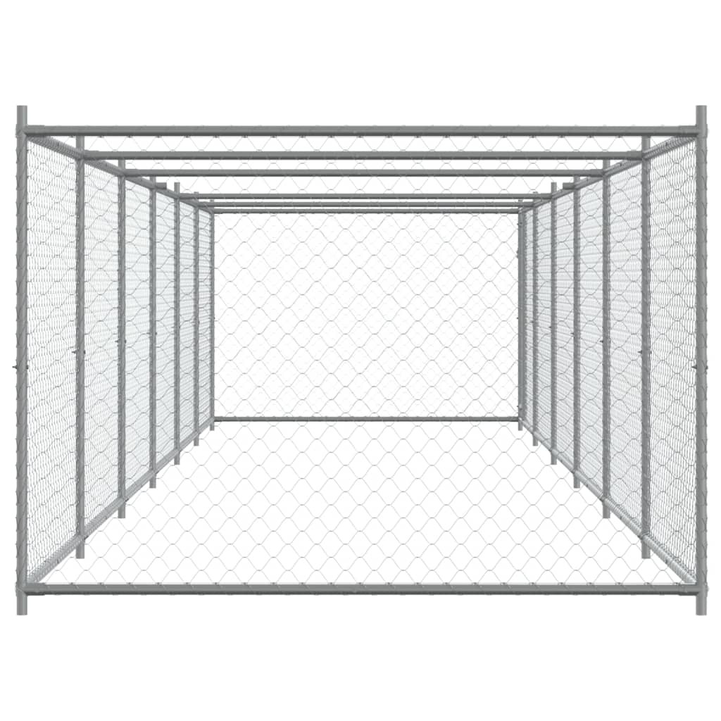 szürke horganyzott acél kutyaketrec ajtóval 12 x 2 x 1,5 m