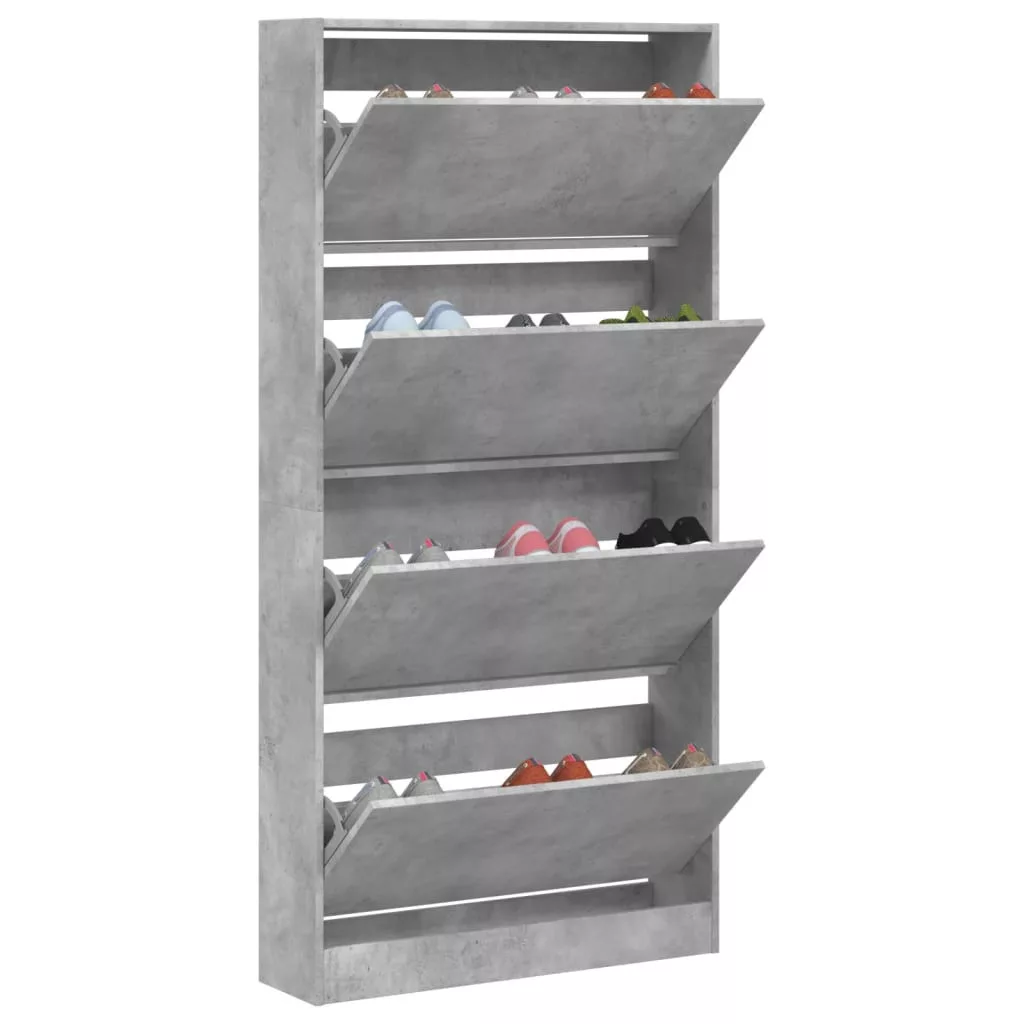 betonszürke cipőszekrény 4 kihajtható fiókkal 80x21x163,5 cm