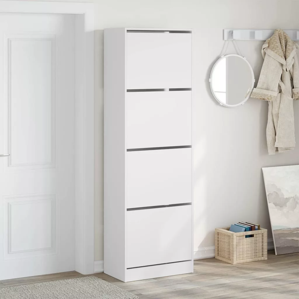 fehér cipőszekrény 4 kihajtható fiókkal 60 x 34 x 187,5 cm