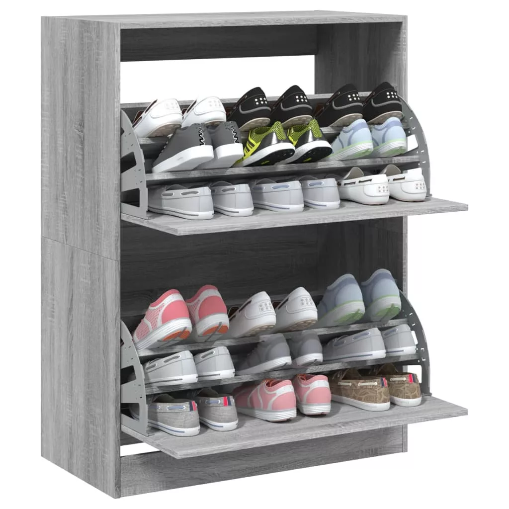 szürke sonoma cipőszekrény 2 kihajtható fiókkal 80x42x108 cm
