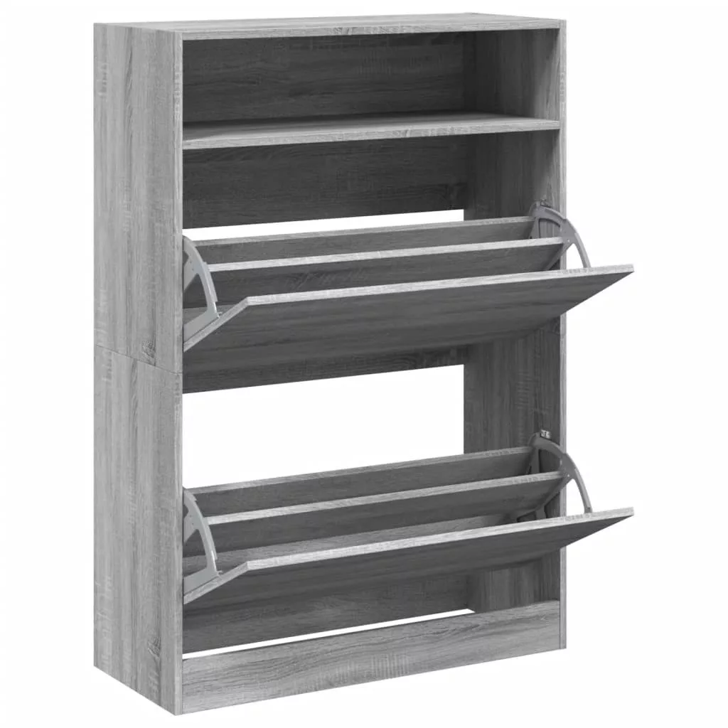 szürke sonoma cipőszekrény 2 kihajtható fiókkal 80x34x116 cm