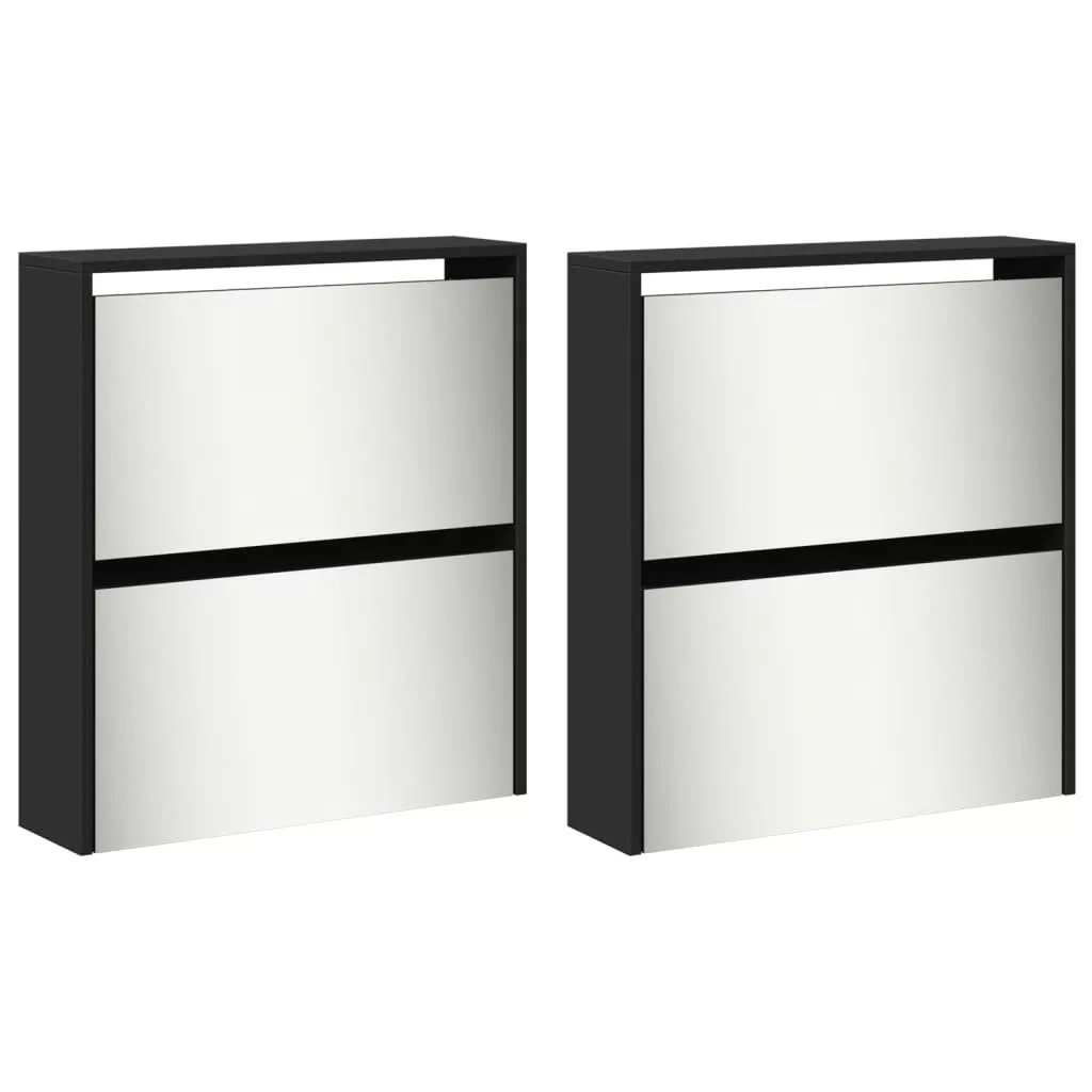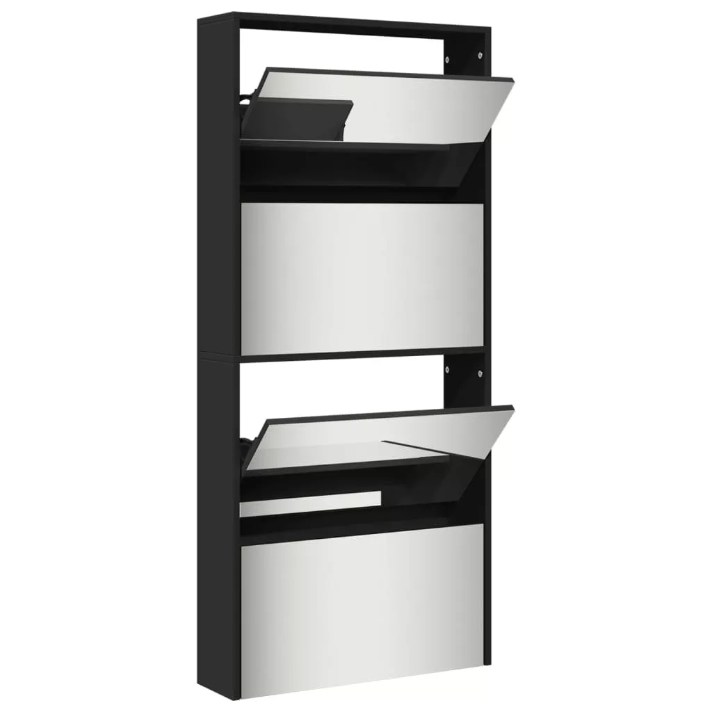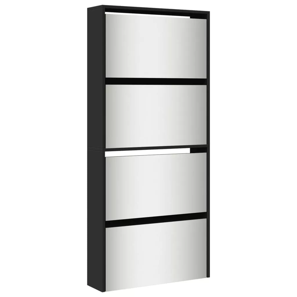 fekete 4 szintes cipőszekrény tükörrel 63 x 17 x 134 cm