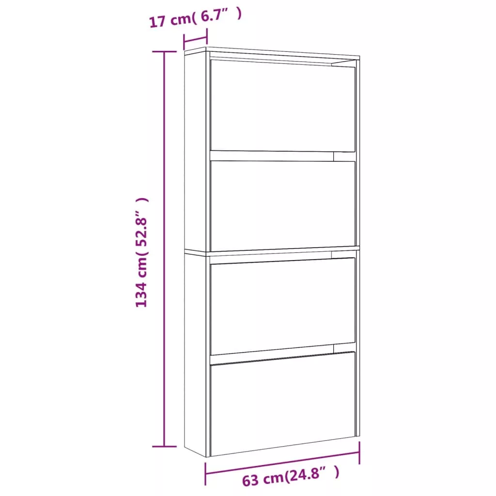 Ez a 4 szintes modern és stílusos kialakítású cipőszekrény kiváló bútor a cipők szervezett tárolásához. Alkalmas bejárathoz, folyosóra, nappaliba, hálószobába vagy bárhova, ahova helyezni szeretné. Tartós anyag: A szerelt fa kivételes minőségű, sima felületű, szilárd, stabil, és ellenáll a nedvességnek.Bőséges tárolóhely: Ez a cipőtartó 4 fiókkal rendelkezik, és mindegyikbe 3-4 pár cipő fér el.Lehúzható fiókos kialakítás: A lehúzható fiókos kialakításnak köszönhetően ez a cipőtároló szekrény könnyen nyitható és zárható. Figyelem:A felborulás elkerülése érdekében ezt a terméket a mellékelt fali rögzítőeszközzel kell használni.
