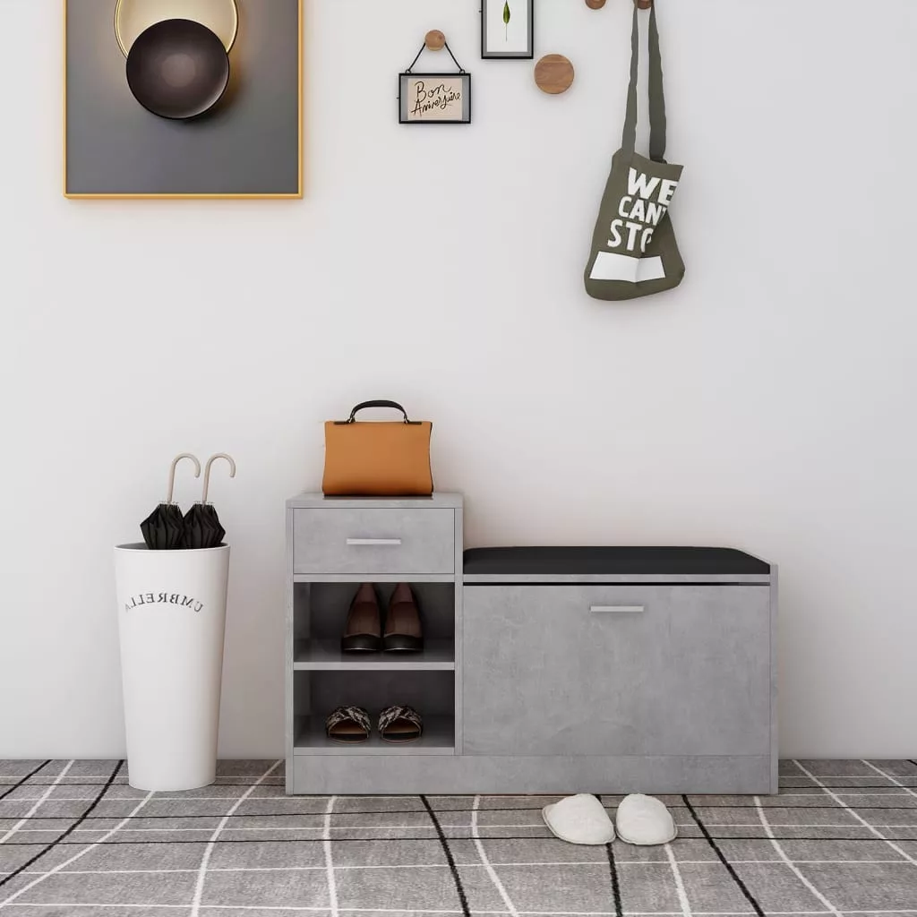 betonszürke szerelt fa cipőtároló pad 94,5 x 31 x 57 cm