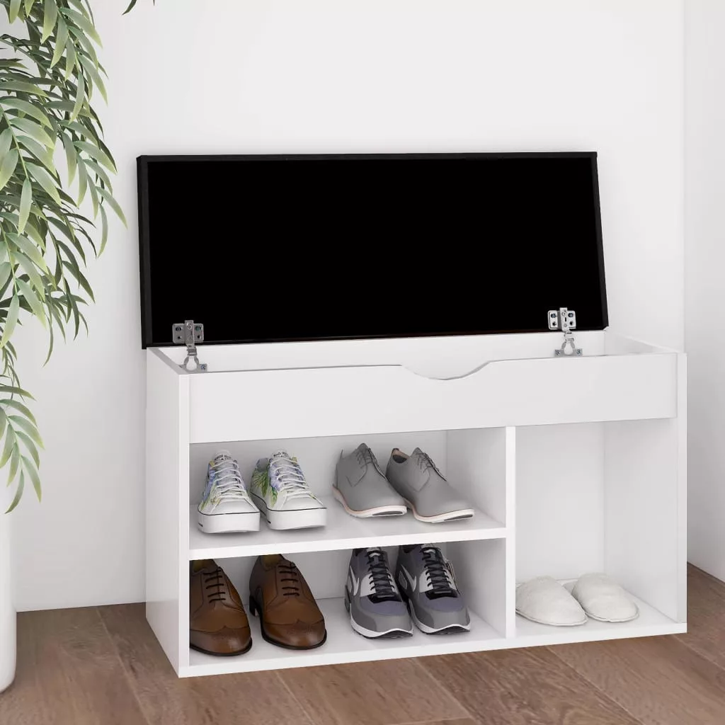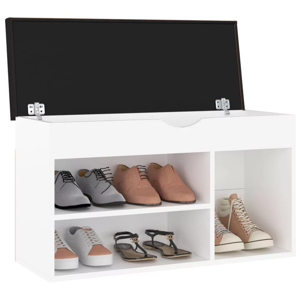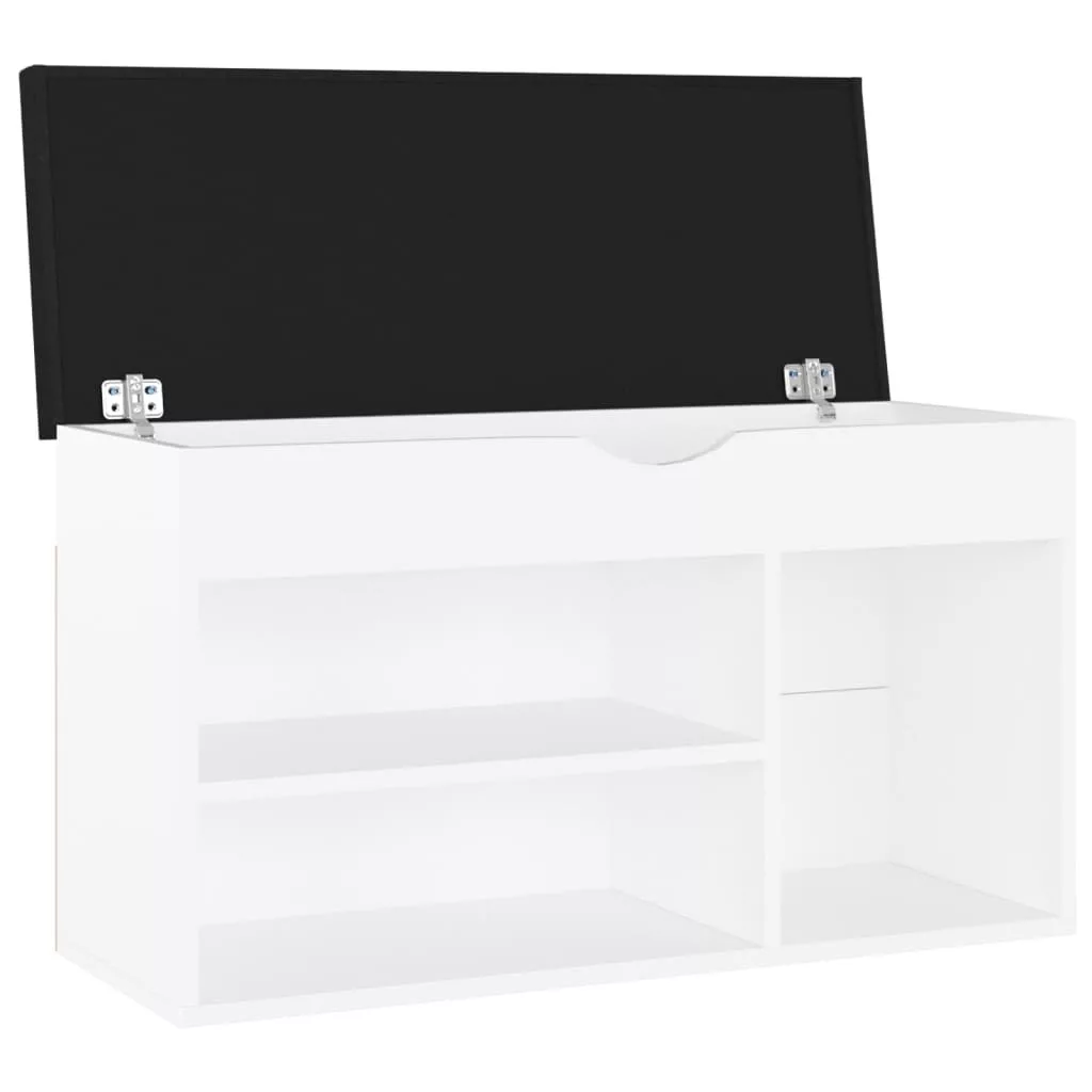 fehér szerelt fa cipőtároló pad párnával 80 x 30 x 47 cm