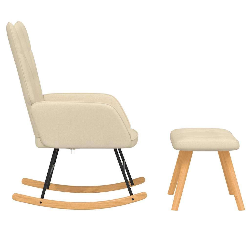krémszínű szövet hintaszék szék zsámollyal