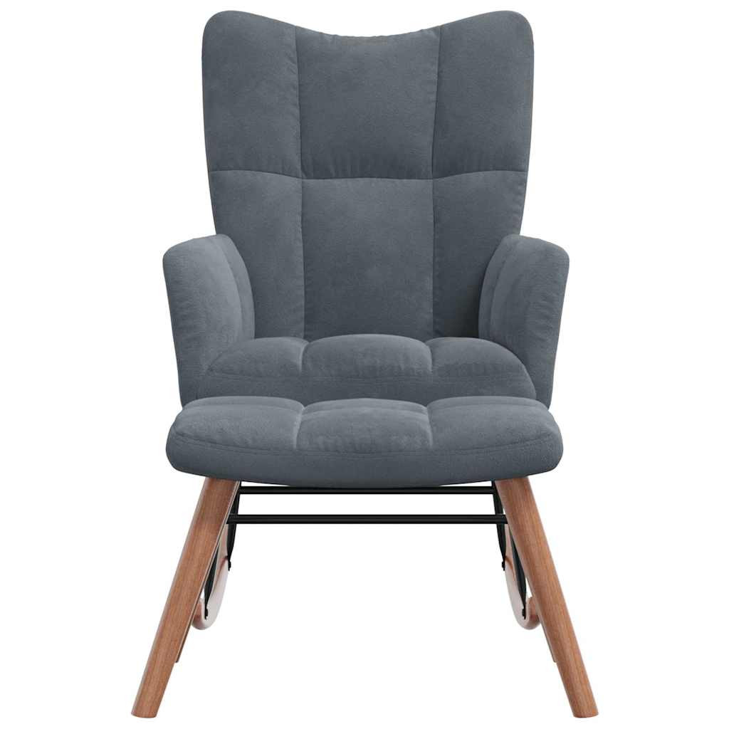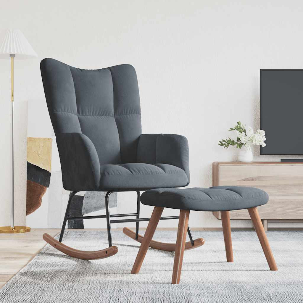 Ez a lábtartóval ellátott hintaszék ízléses és elegáns megjelenésével egy csipetnyi modern bájt csempész otthonába. A négyzetes varrásoknak köszönhetően a pihenőszék gyönyörű megjelenésű. A vastag habszivacsos párnázás és a puha tapintású bársonykárpit optimális kényelmet nyújt. A hosszú talpak miatt a fotel nehezen fog felborulni. Emellett az acélváznak és a lábaknak, valamint a fa hintatalpaknak köszönhetően a nappaliszék és a lábtartó stabil és tartós. Maximum 110 kg ülésenként. Ügyeljen a nyílt tűz és más erős hőforrások veszélyére a termék közelében.