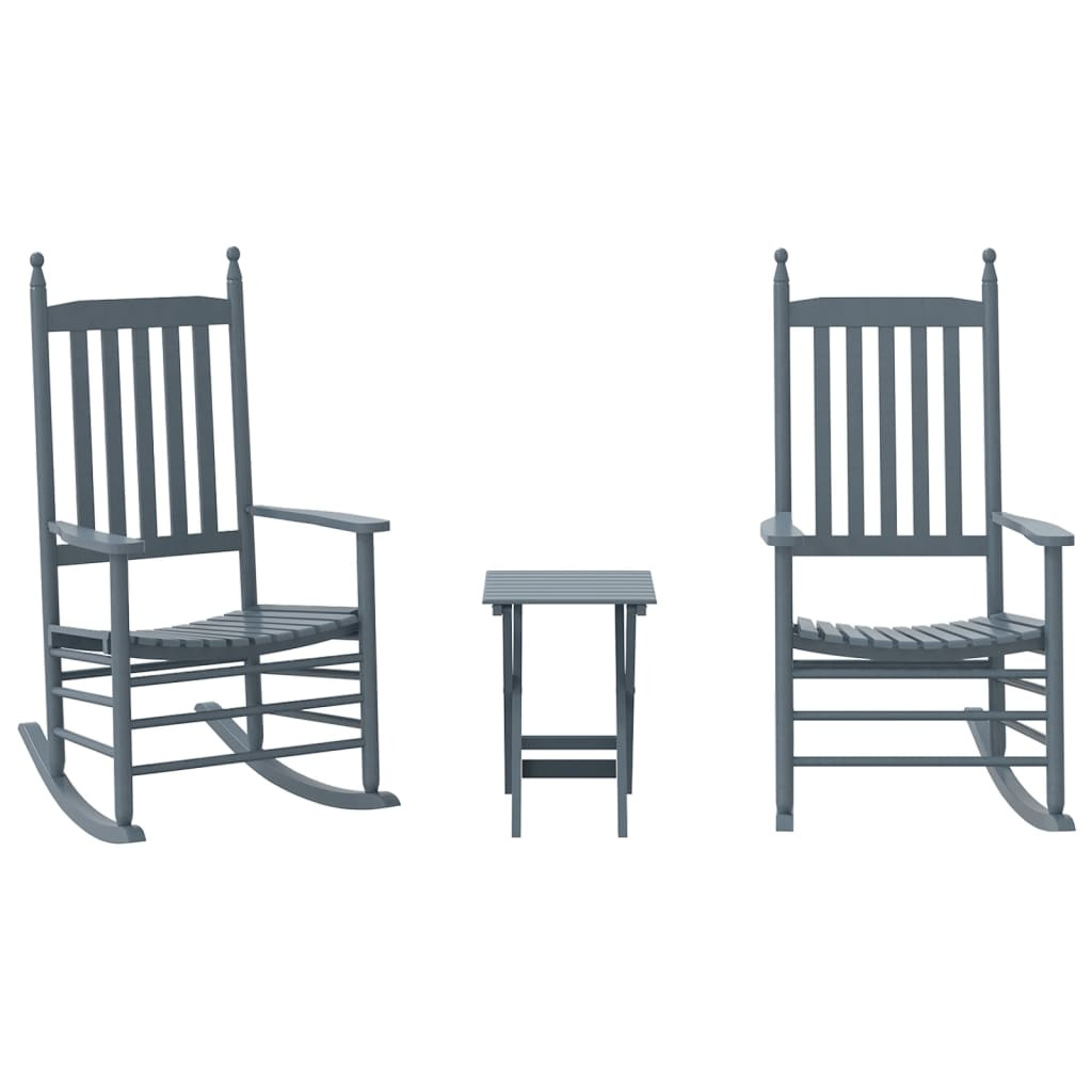 2 db szürke tömör nyárfa hintaszék összecsukható asztallal