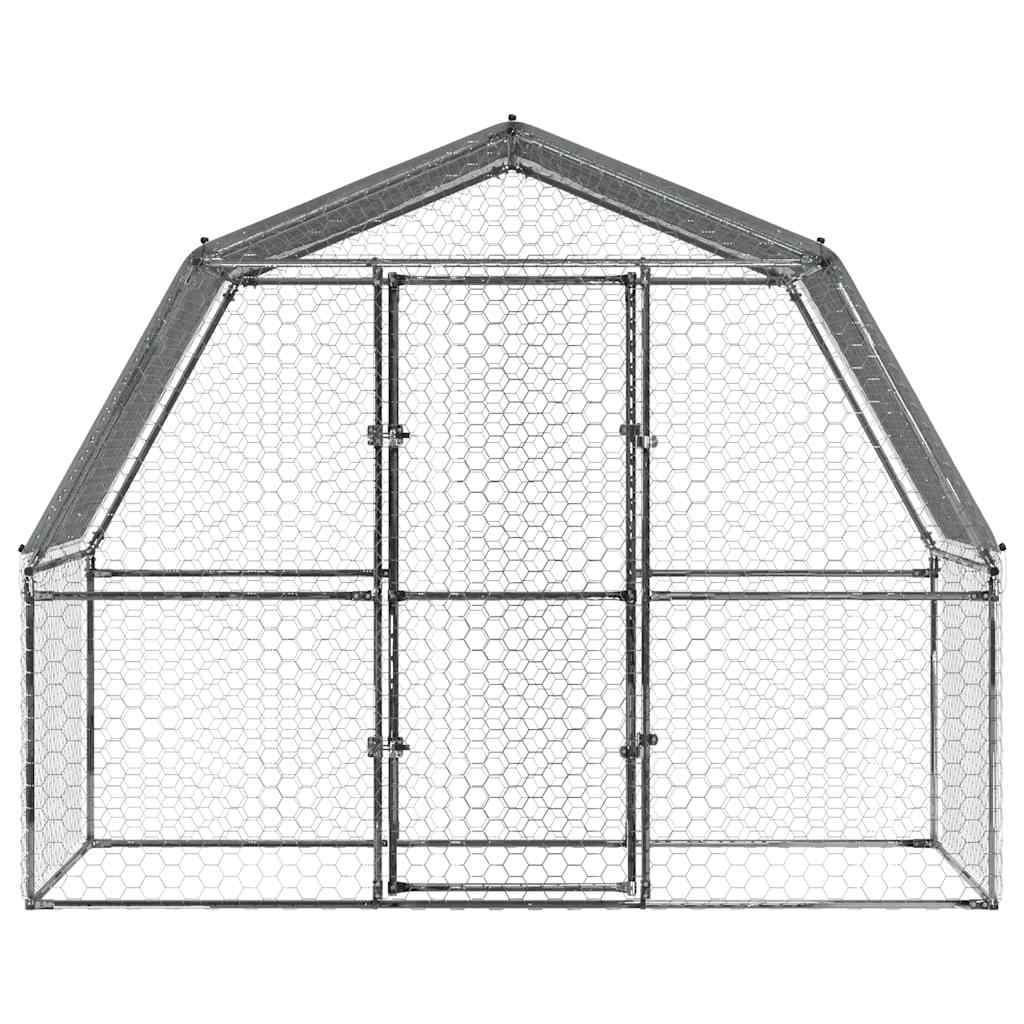 ezüst horganyzott acél tyúkketrec tetővel és ajtóval