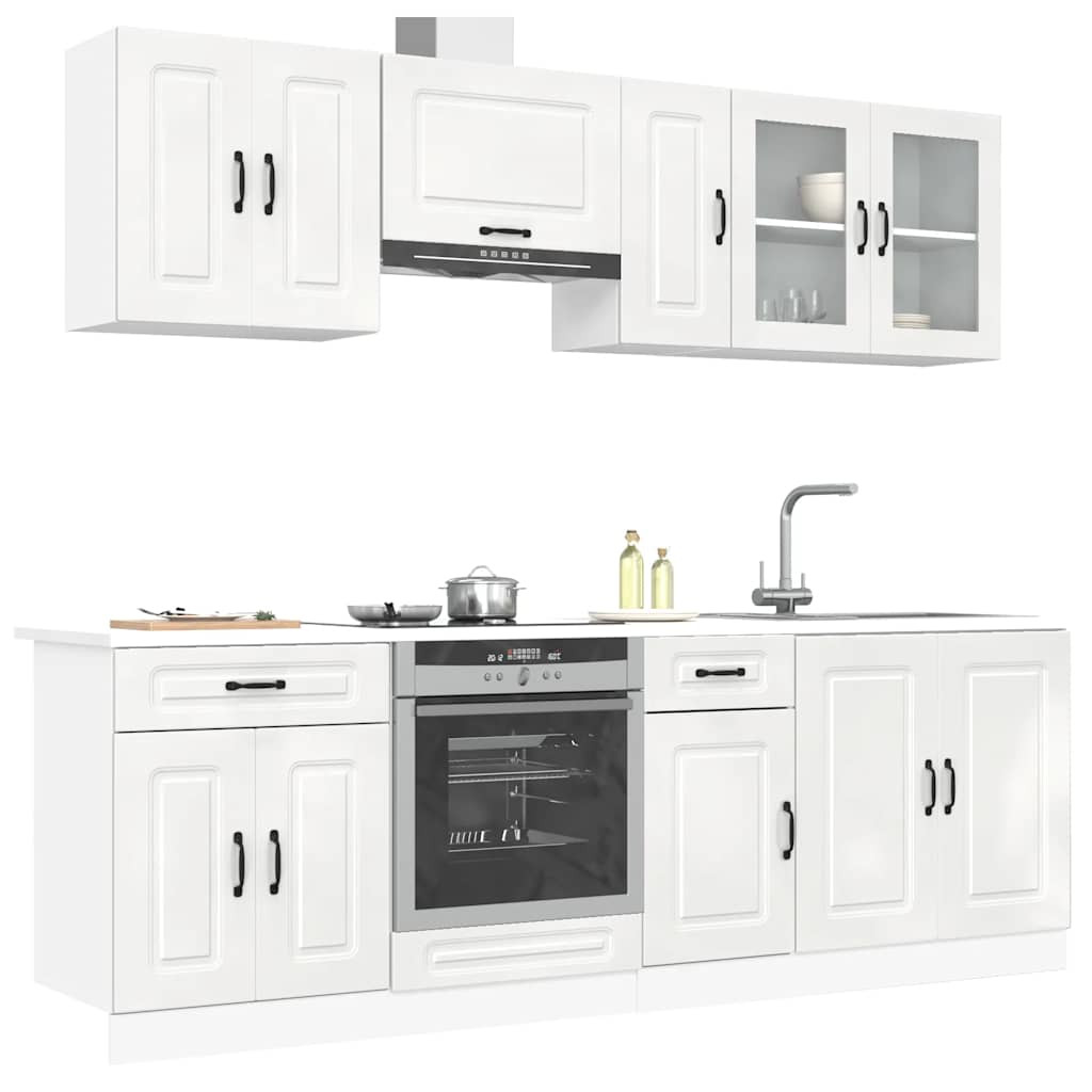 8 részes konyhai szekrény szett Kalmar fényes fehér műfa