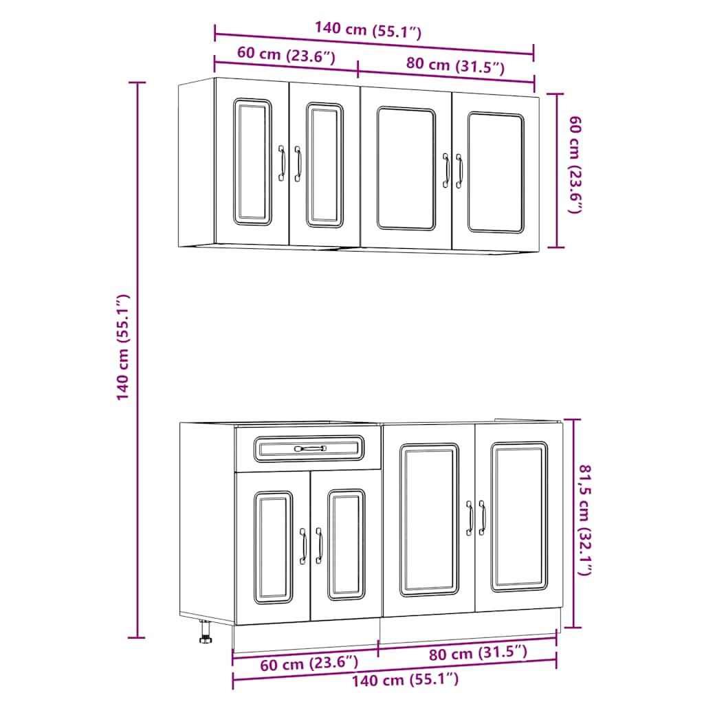Ez az elegáns kialakítású, négyrészes konyhai szekrénygarnitúra optimalizálja konyhája terét, és bőséges tárolóhelyet biztosít személyes tárgyainak! Stabil és tartós anyag: A szerelt fa tartós és stabil anyag sima felülettel, amely ellenáll a nedvességnek, a vetemedésnek és a hasadásnak, így megbízható választás különféle célokhoz.Bőséges tárolóhely: A konyhaszekrénykészlet számos rekesszel rendelkezik, és elegendő helyet kínál tálak, tányérok, edények és egyéb konyhai eszközök tárolására.Állítható lábak: Az alsó szekrények állítható lábakkal rendelkeznek, amelyek magassága a konyha elrendezésének megfelelően állítható.Könnyen karbantartható: A sima felületnek köszönhetően ezek a konyhaszekrények könnyen tisztíthatók nedves ruhával, és kevesebb karbantartást igényelnek. Figyelem:A felborulás elkerülése érdekében ezt a terméket a mellékelt fali rögzítőeszközzel kell használni. Jó tudni:A falon belüli csavar(ok) és dugó(k) nem alaptartozékok. Keressen és használjon a falának megfelelő csavar(oka)t és dugó(ka)t. Ha bizonytalan, kérje szakember tanácsát. Gondosan olvassa el és kövesse a használati utasítás minden lépését.A munkalap, a mosogató és a csaptelep nem tartozéka a szállításnak.