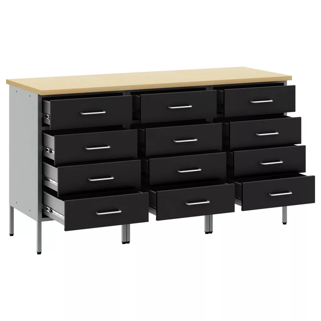 Ez az ipari munkaszekrény 4 fiókjával a legjobb megoldás a garázsod vagy műhelyed rendre rakására. A sima fekete és szürke kialakítással és fa-szerű befejezéssel ötvözi az alap funkciókat az elegáns ipari stílussal, így minden munkaterületen jól mutat. Robosztus Felépítés: Ez a munkaszekrény erős acélból és mérnöki fából készült, hosszú életű és bír akár 150 kg-ot. Ideális a nehéz szerszámok és kellékek számára. Tágas Tárolás: Négy fiók, golyóscsapágyas csúszó sínekkel, könnyű hozzáférést biztosítanak a szerszámaidhoz, minden rendezve tartva. Minden fiók akár 10 kg-ból is bír, tökéletes a különféle eszközökhöz. Állítható Lábak: Ezek az állítható lábak szintben tartják a szekrényt egyenetlen padlón, és jól illeszkednek bármilyen munkaterülethez, akár forgalmas garázsról van szó. Könnyű Karbantartás: A sima felületek könnyen tisztíthatók, így kevesebb időt töltesz takarítással, és több időt a projektjeiddel. Ideális Több Felhasználásra: Ez a szekrény jól néz ki és rendkívül funkcionális, tökéletesen illik bármilyen munkaterülethez. Akár egy hétvégi barkácsolóról van szó, akár egy profihoz, úgy tervezték, hogy minden tárolási igényedet hatékonyan kielégítse.