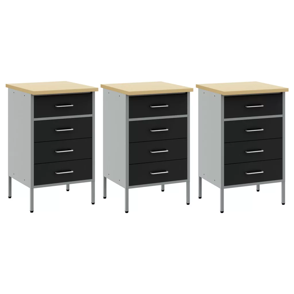 Munkaszekrény 3 db Fekete és Szürke Mérnöki Fa és Acél