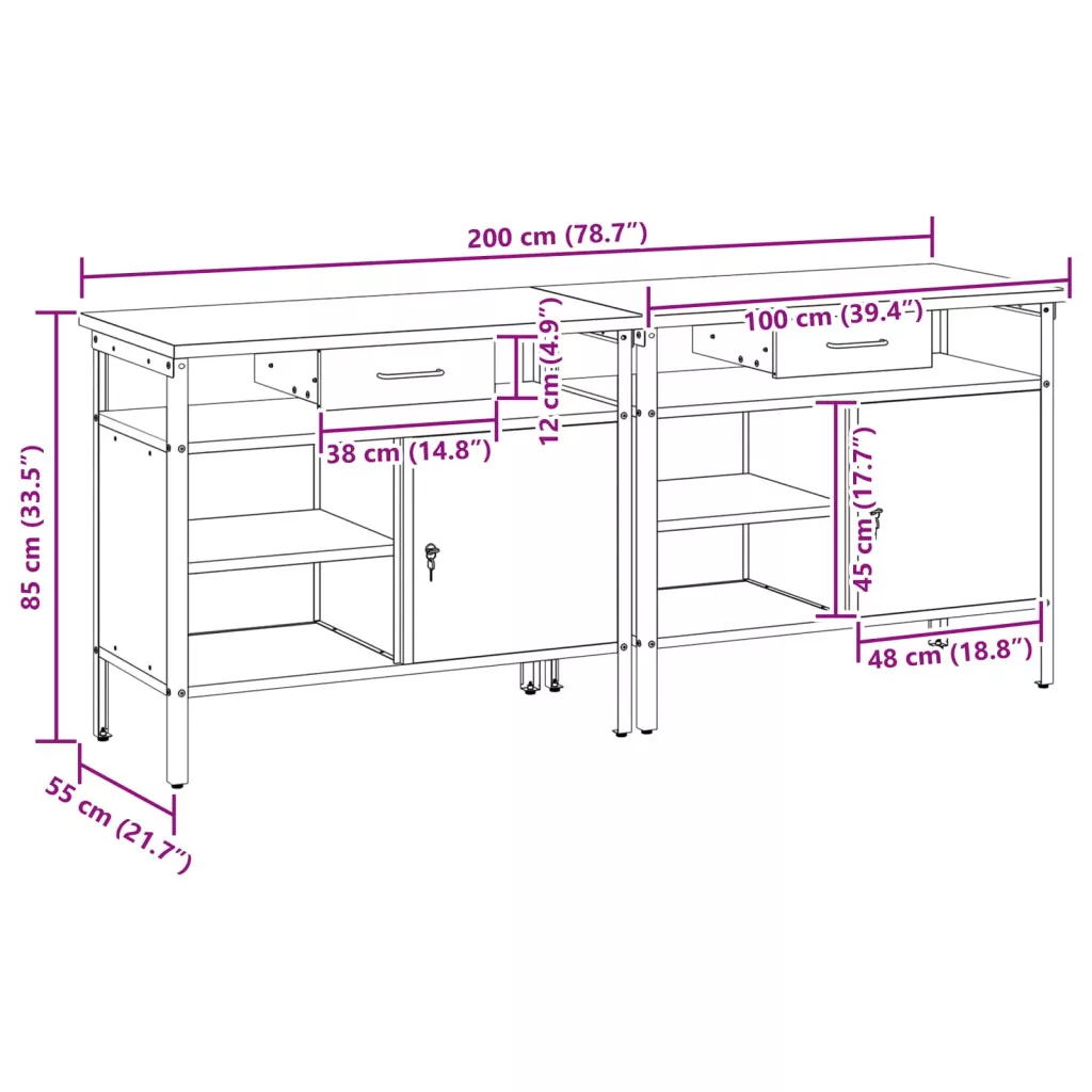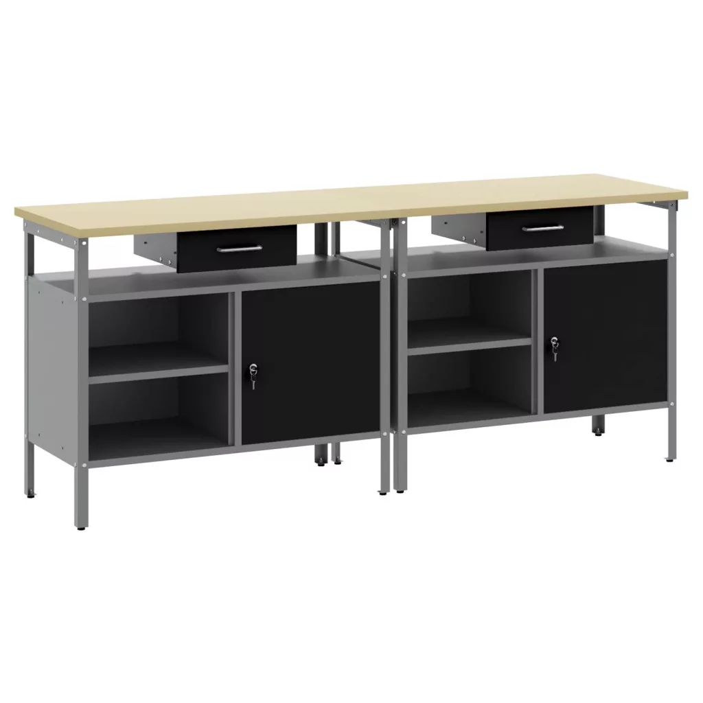 Munkapad készlet 2 pcs Fekete 200 x 55 x 85 cm Porszórt acél