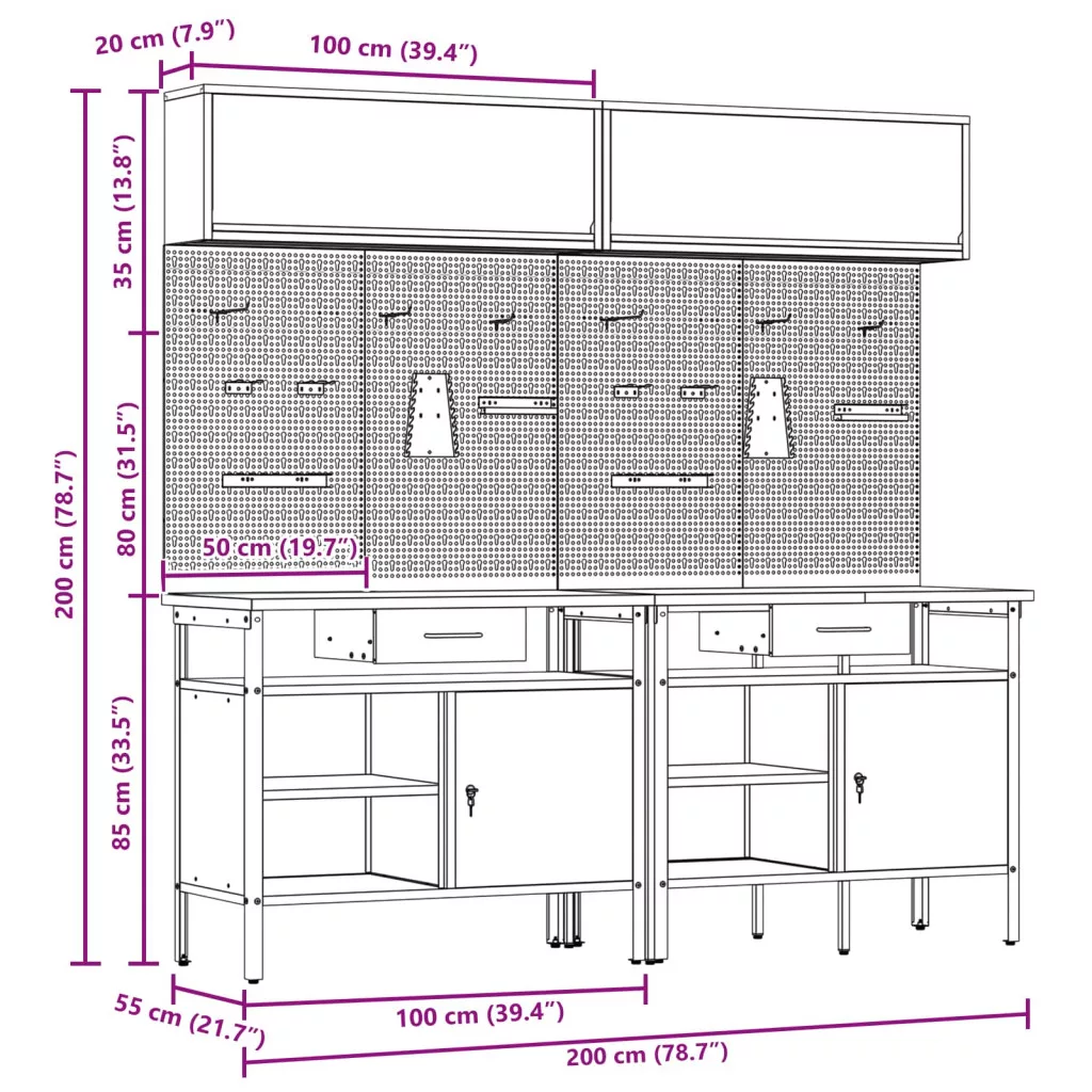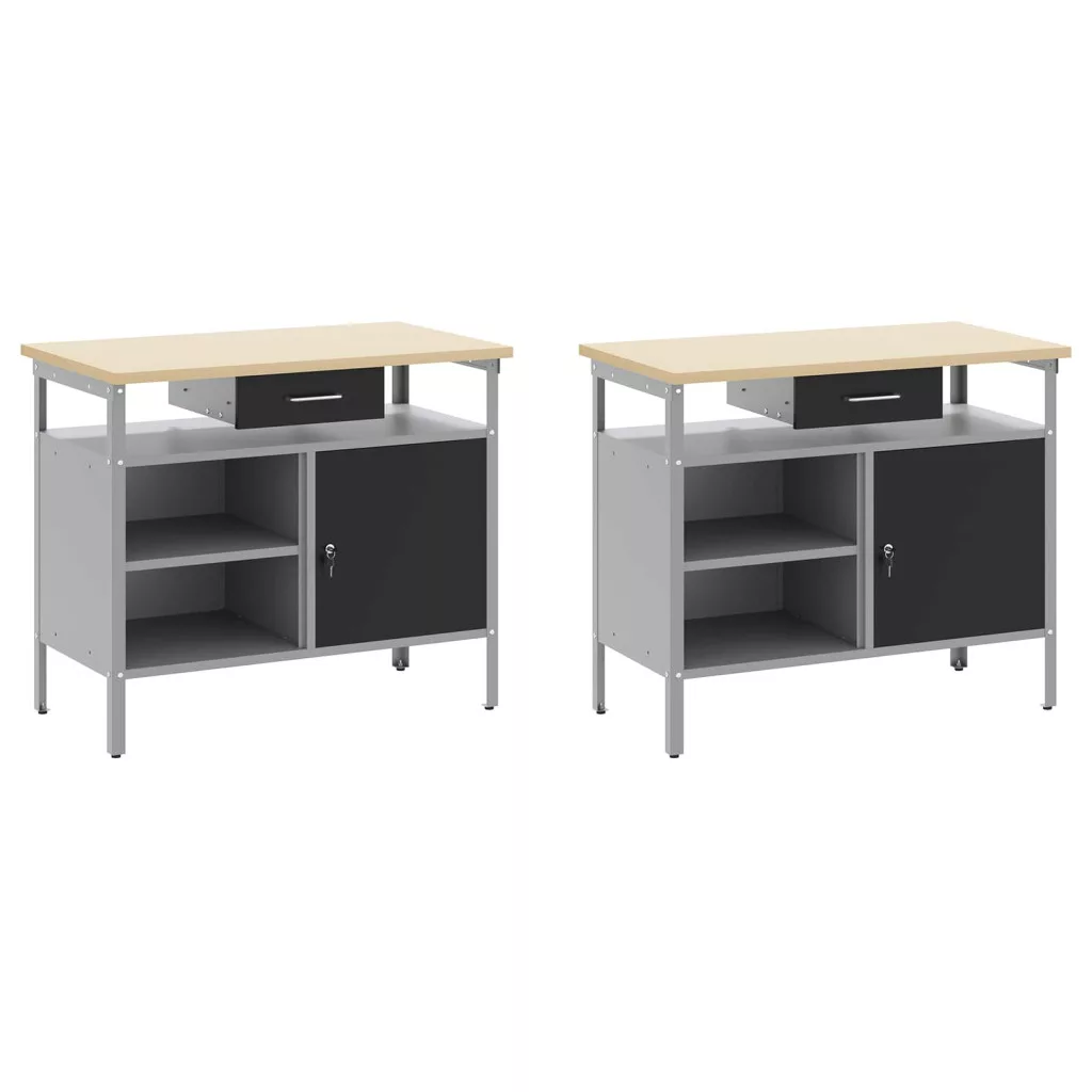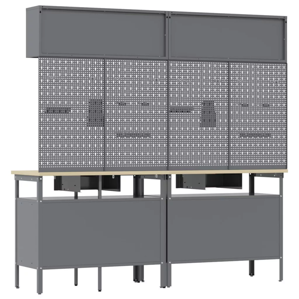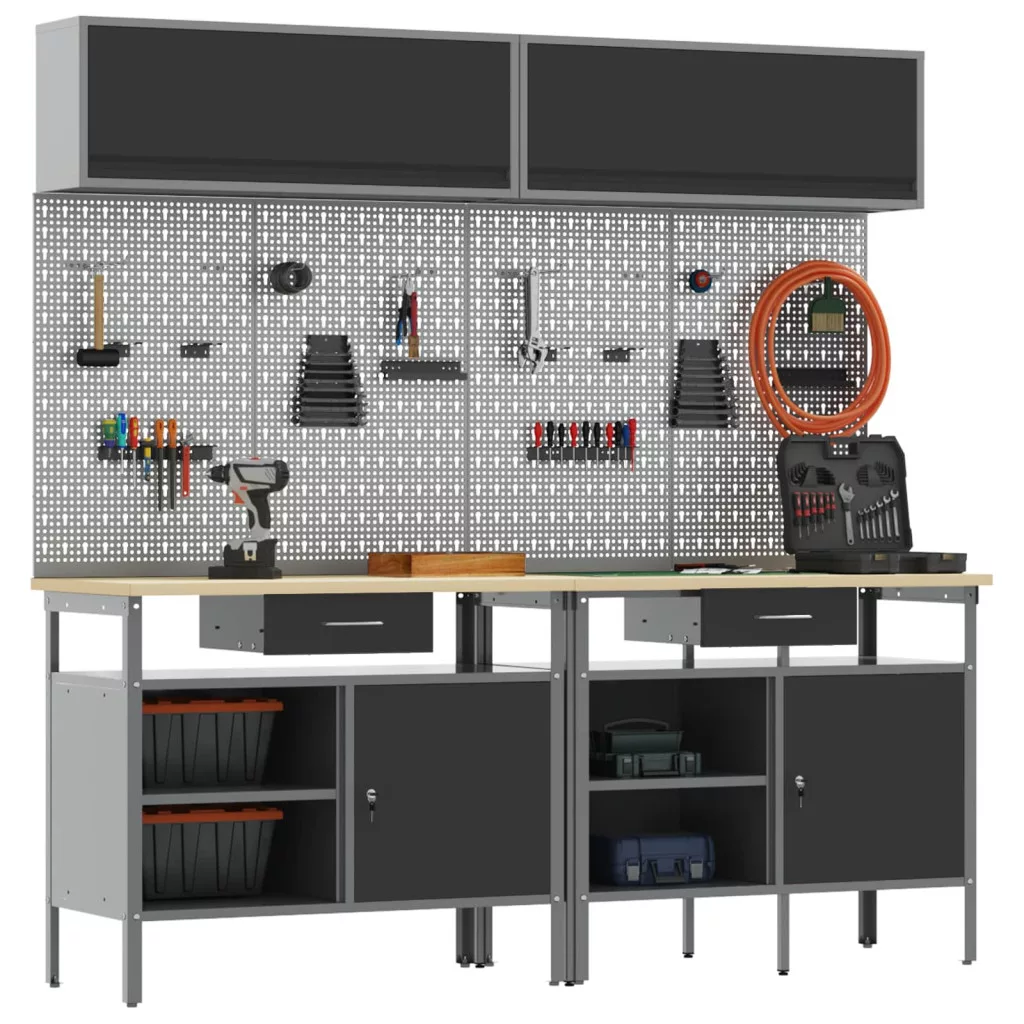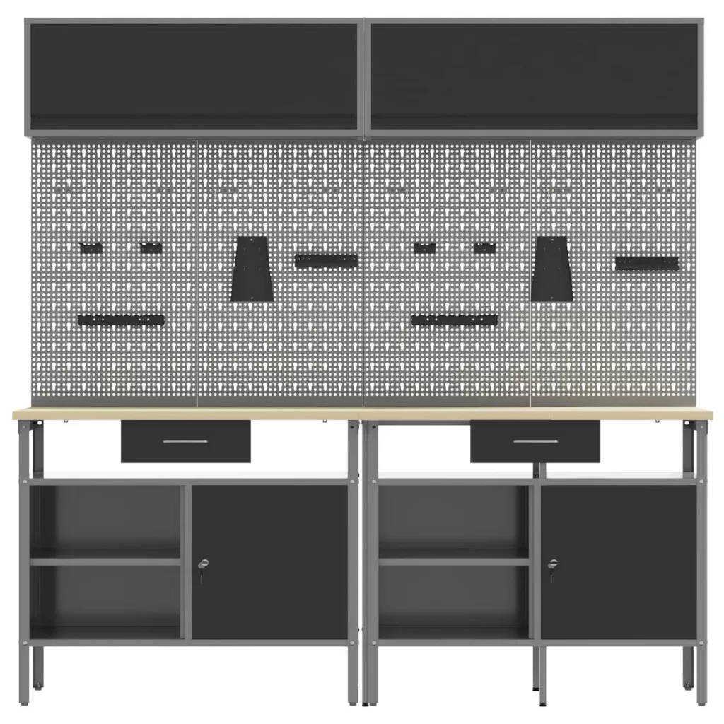 Munkapad készlet fiókkal polcokkal tárolóval 8 pcs Fekete Acél
